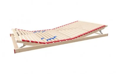 Stelaż pod materac Docja to sprężysty model, który składa się z 28 listew z drewna brzozowego. Stelaż ten doskonale dopasowuje się do Twojego stylu życia i zapewnia precyzyjne podparcie ciała, wspierając zalety wybranego przez Ciebie materaca. Każda listewka stelaża zamocowana jest w elastycznym uchwycie, co umożliwia im płynne poruszanie się góra-dół, dzięki czemu materac zyskuje większą sprężystość. Stelaż daje również możliwość regulacji twardości w części środkowej, co pozwala na dostosowanie podparcia do indywidualnych potrzeb. Dodatkowo, manualna regulacja wysokości zagłówka i podnóżka zapewnia komfortowe warunki do odpoczynku i relaksu i jest idealna dla osób, które np. lubią czytać książki i oglądać telewizję w łóżku.