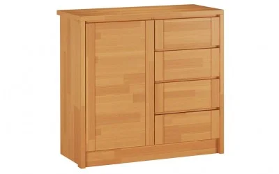 Drewniana komoda Prince III z czterema szufladami to doskonały wybór dla osób, które szukają połączenia funkcjonalności i estetyki. Zaprojektowana z dbałością o szczegóły, ta komoda wyróżnia się swoim eleganckim wyglądem i doskonale wpisuje się w wiele różnych aranżacji wnętrz. Dzięki naturalnemu odcieniowi drewna i wykończeniu lakierem lub olejem, pięknie podkreślającym słoje, komoda Prince III prezentuje się bardzo stylowo i będzie idealnym wyborem do sypialni, pokoju dziecięcego, salonu czy przedpokoju.