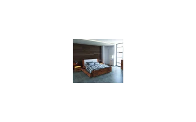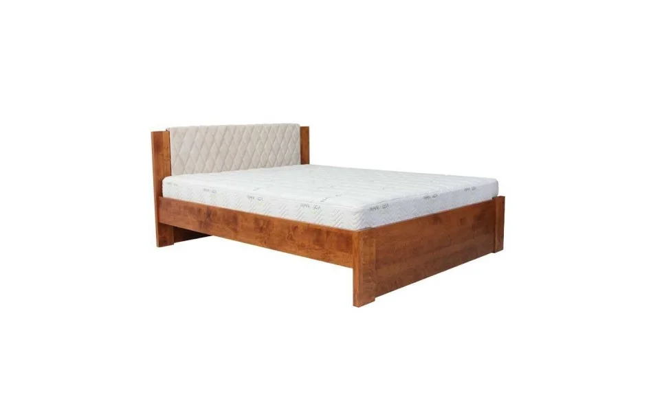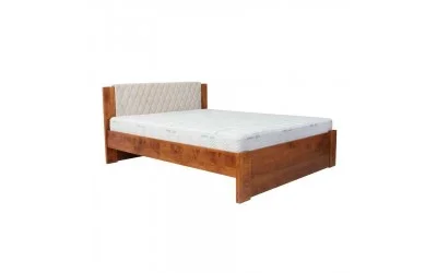 Wysoki zagłówek łóżka został wyposażony w miękkie tapicerowanie, co zapewnia wygodę i komfort podczas siedzenia na łóżku. Kolor materiału obiciowego można wybrać z szerokiej kolekcji Eko-skóry Vienna. Dodatkowo, istnieje możliwość wyboru koloru drewnianej konstrukcji, w tym: olcha naturalna, miodowy, wiśnia, orzech, ciemny orzech lub olcha biała.