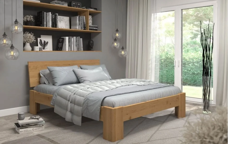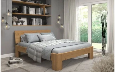Łóżko z litego drewna olchowego lub dębowego dostępne także w innych wybarwieniach oraz z pojemnikiem na pościel.