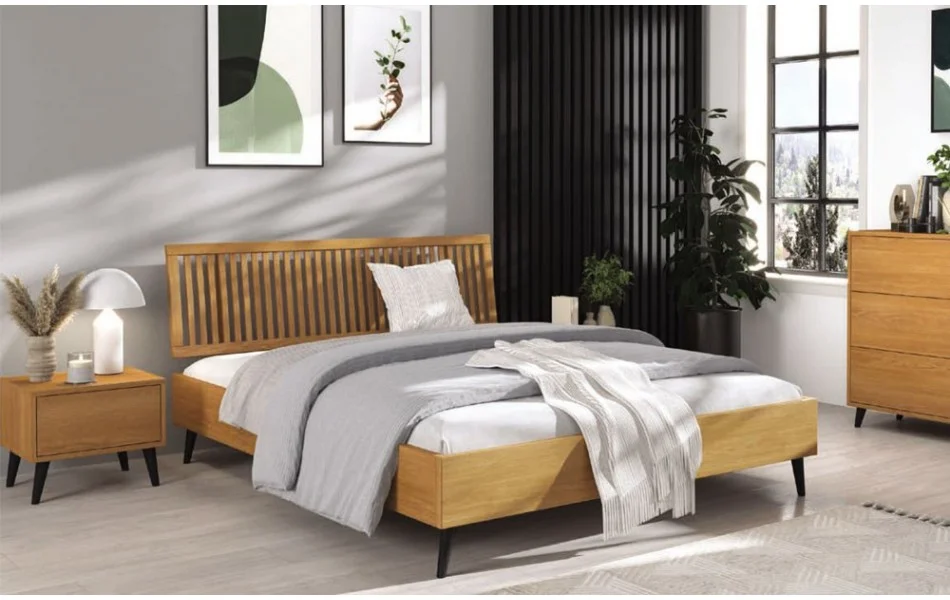 Łóżko z litego drewna olchowego lub dębowego dostępne także w innych wybarwieniach oraz z pojemnikiem na pościel.