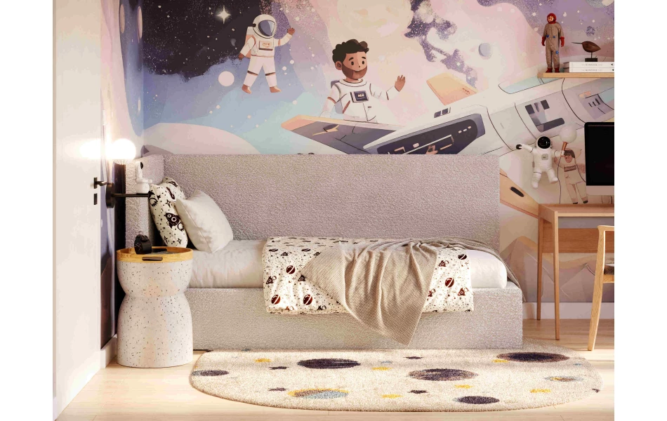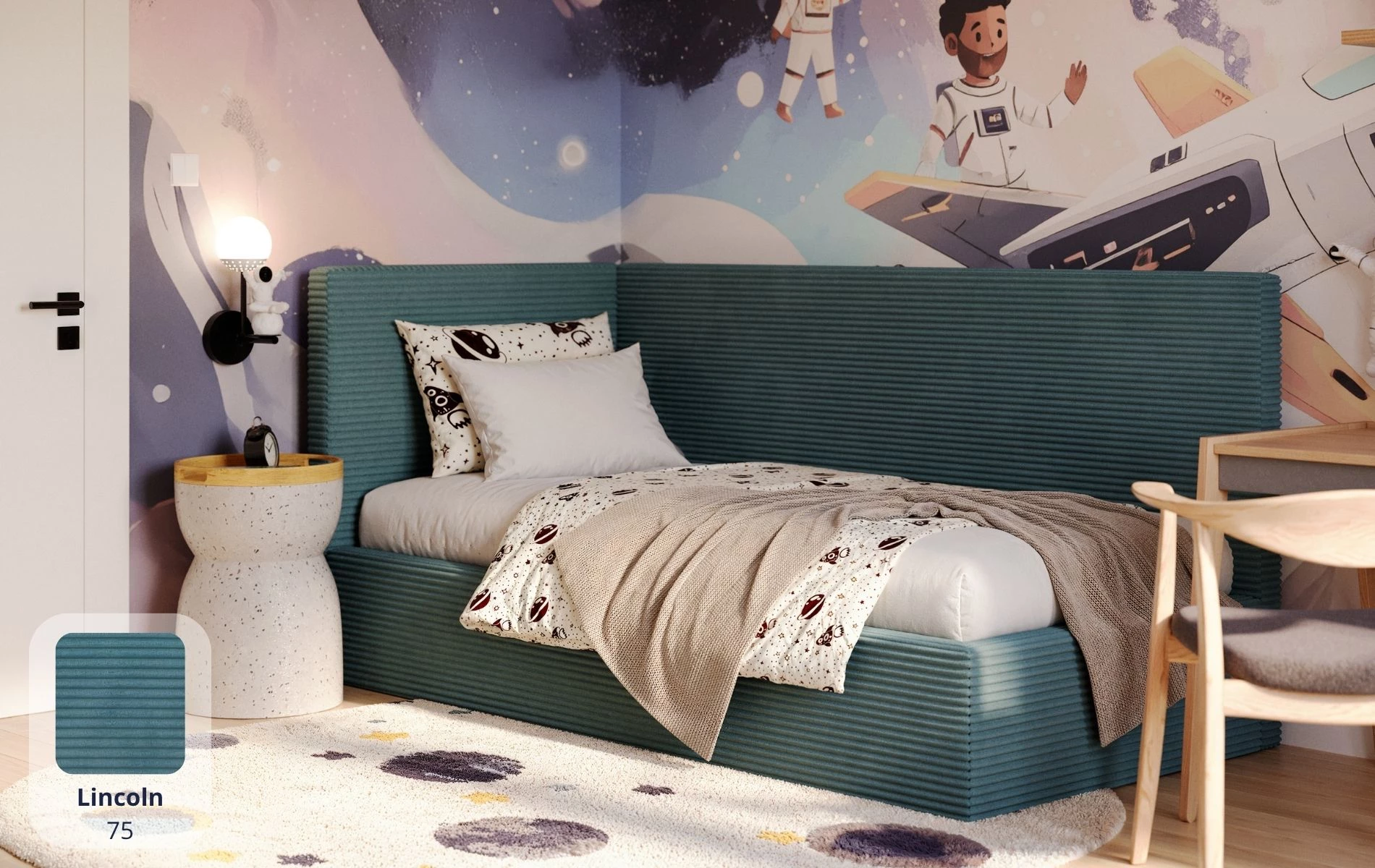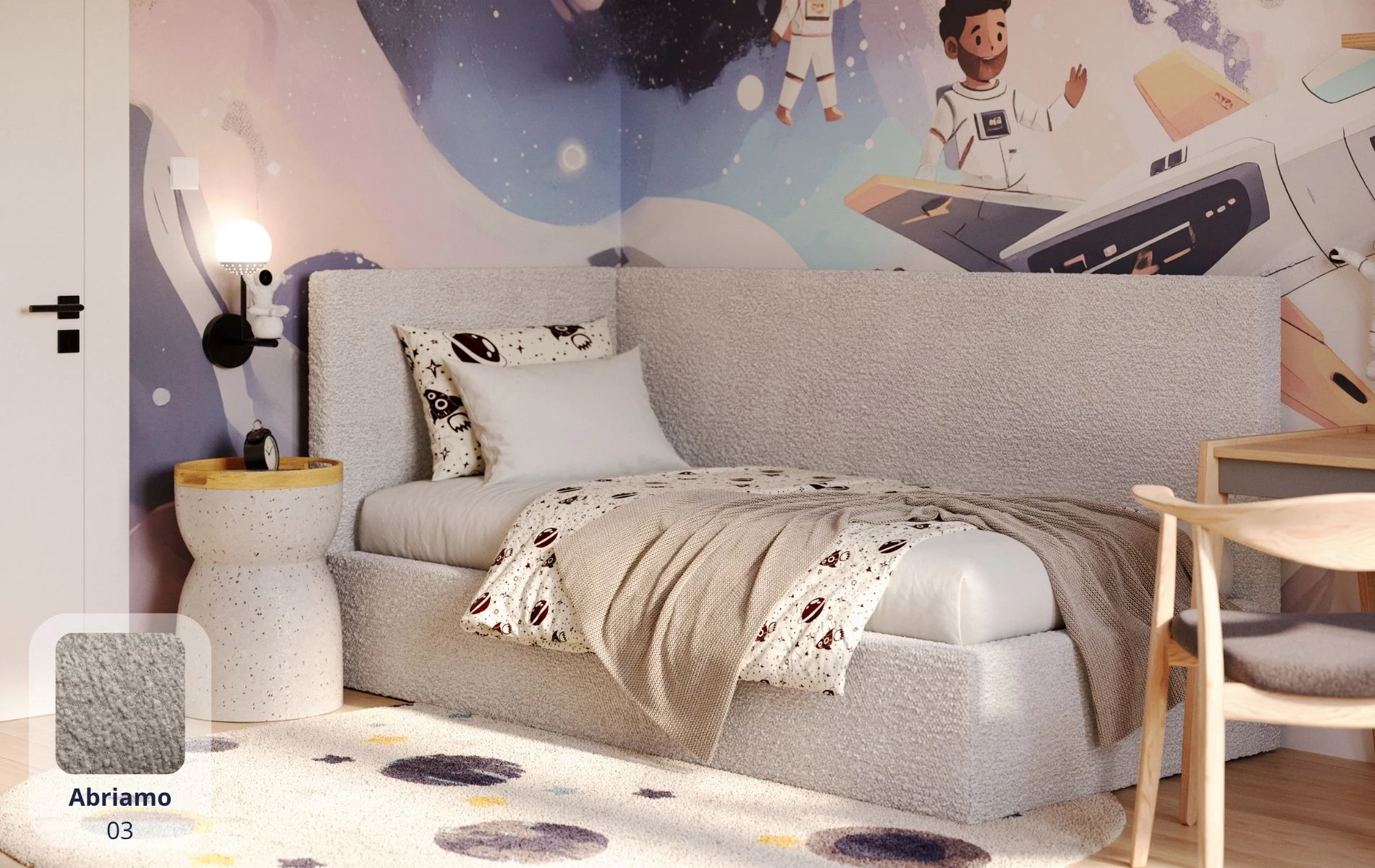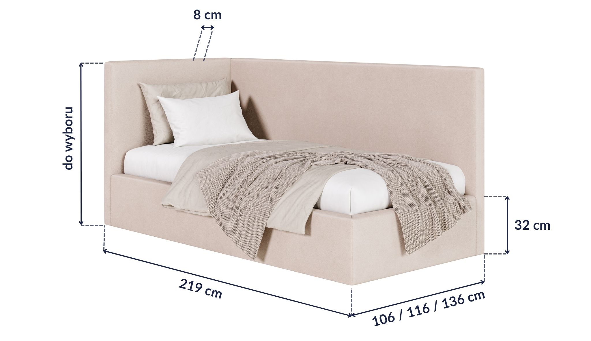 Łóżko pojedyncze TITAN zostało stworzone z myślą o indywidualnym dopasowaniu do wnętrza i realnym komforcie. Narożne tapicerowane wezgłowie, o grubości aż 8 cm, zapewnia wygodne podparcie i estetyczne wykończenie.