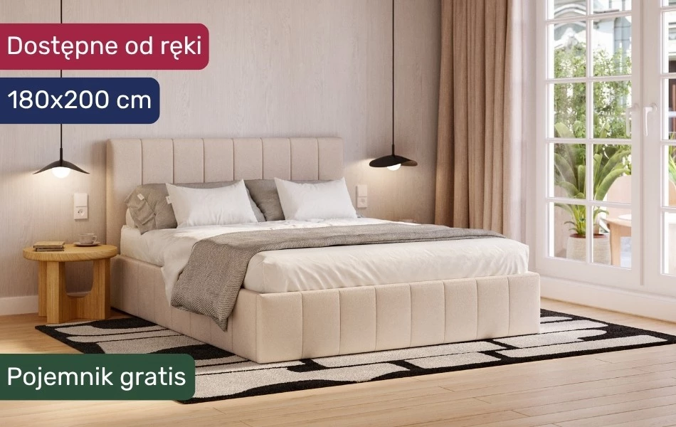Beżowe łóżko tapicerowane 180x200 SOL – kompletne i gotowe do snu w 72h!
