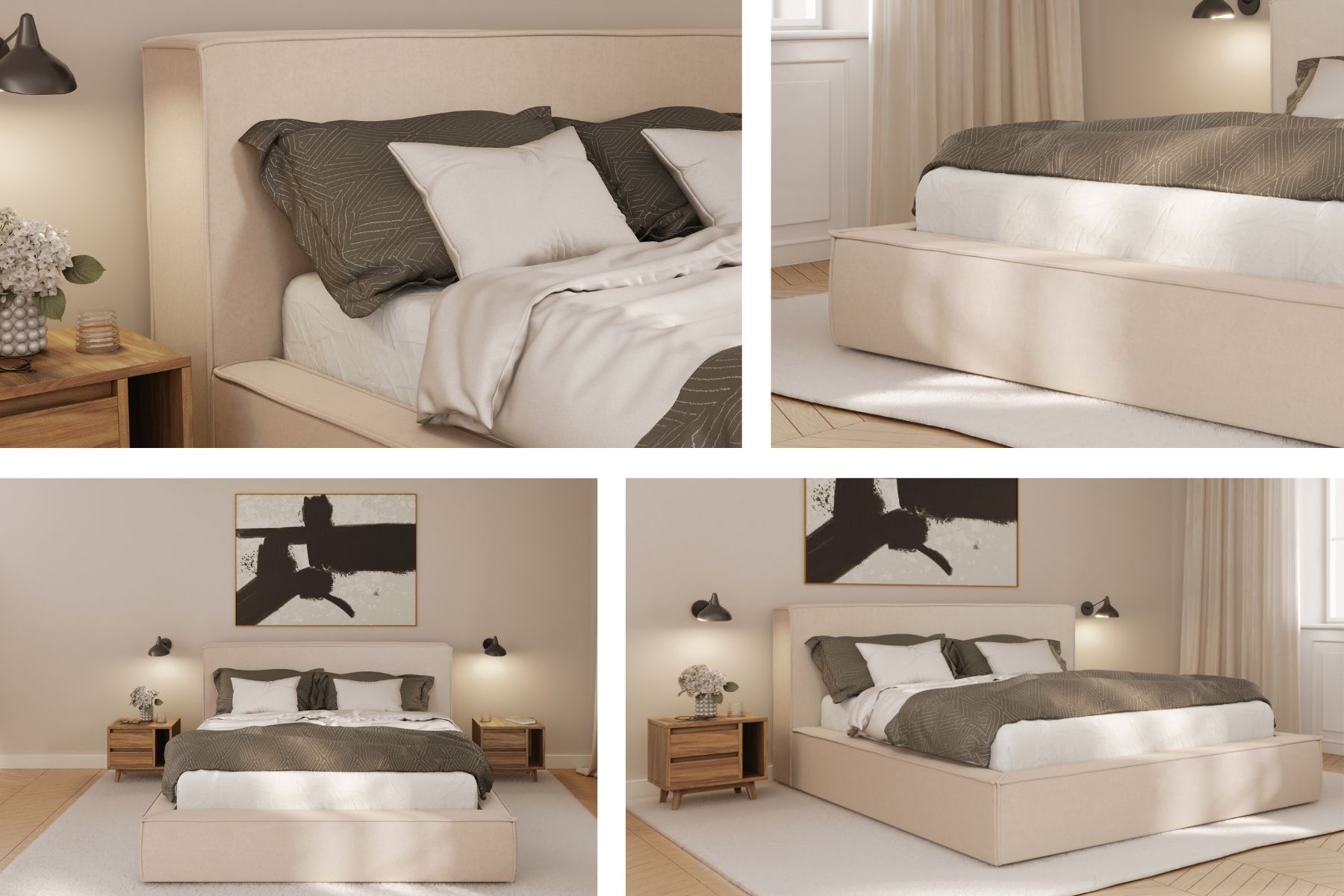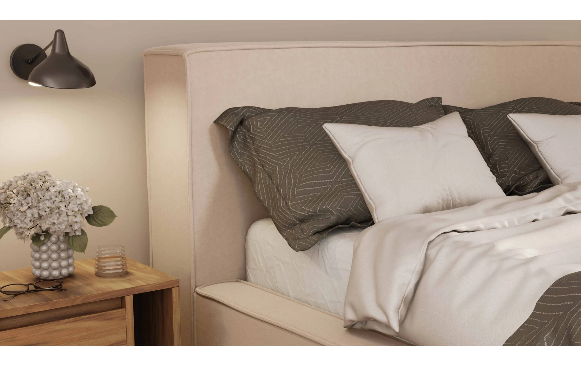 Dzięki prostemu konfiguratorowi stworzysz swoje wymarzone łóżko w kilka chwil. Wybierz kolor i rodzaj tkaniny. Określ wysokość wezgłowia - pozwoli Ci to dopasować łóżko w mniej ustawnej przestrzeni lub zapewnić sobie wygodne oparcie w czasie wieczornego relaksu.