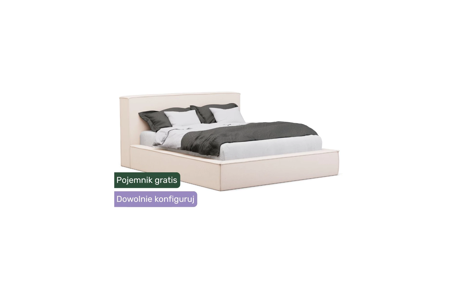 KOMPLETNY ZESTAW - Łóżko jest w zestawie z pojemnikiem na pościel i stelażem.