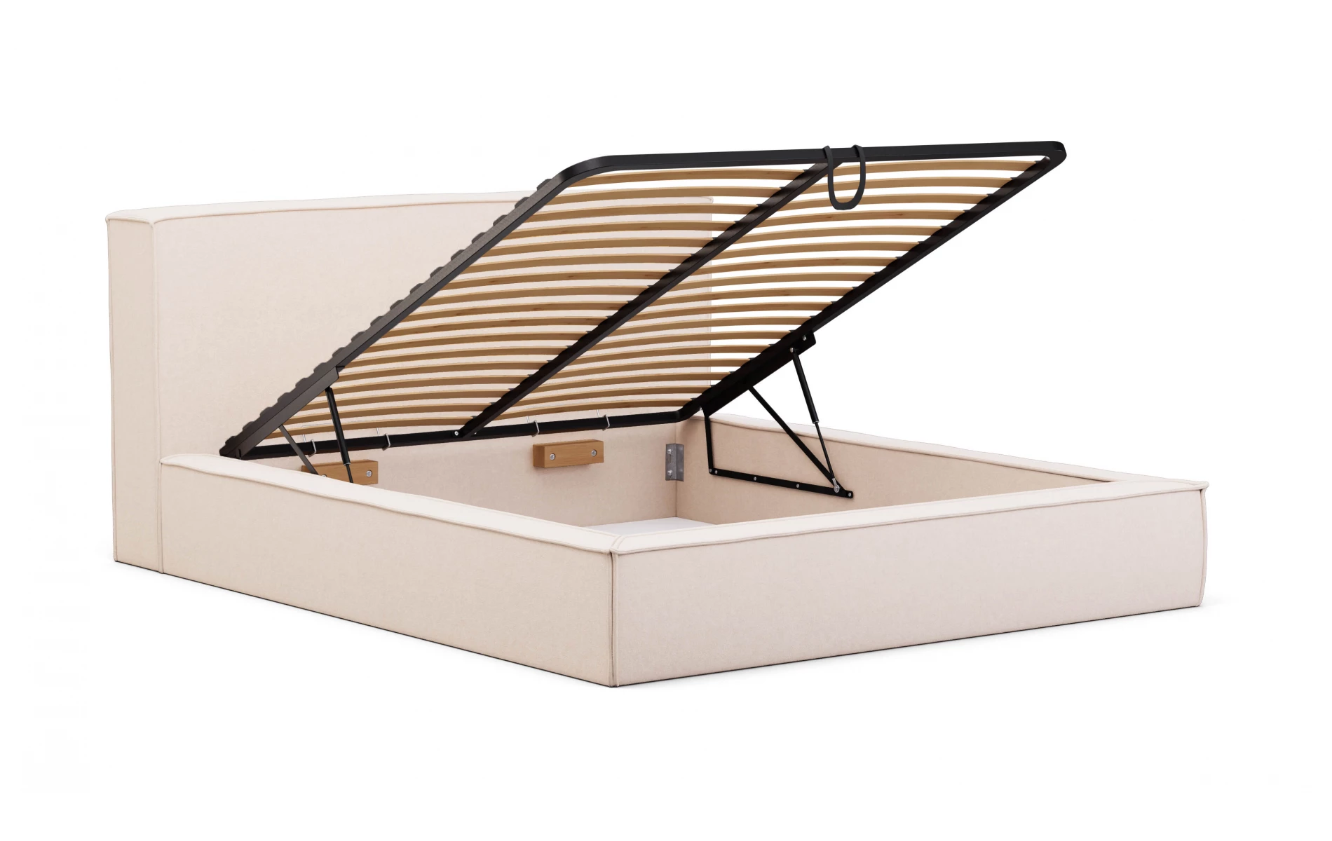 Funkcjonalny pojemnik na pościel zamocowany jest na siłownikach gazowych. Dzięki temu jest łatwy w obsłudze i gwarantuje wygodę użytkowania. Pojemnik na pościel to praktyczny sposób na przechowywanie pościeli, koców, czy innych przedmiotów, które mogą niepotrzebnie zajmować miejsce w sypialni.