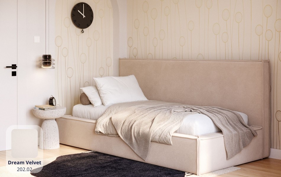 Dzięki prostemu konfiguratorowi stworzysz swoje wymarzone łóżko w kilka chwil. Wybierz kolor i rodzaj tkaniny. Określ wysokość wezgłowia - pozwoli Ci to dopasować łóżko w mniej ustawnej przestrzeni lub zapewnić sobie wygodne oparcie w czasie wieczornego relaksu.
