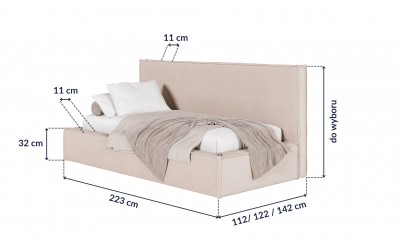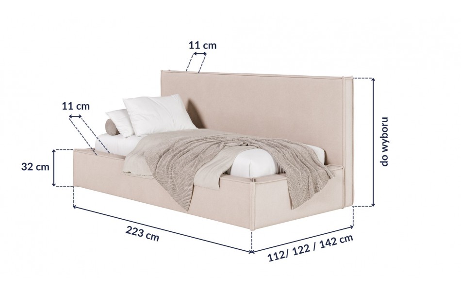 ● długość: 223 cm, szerokość: 112 cm, powierzchnia spania: 90x200 cm,