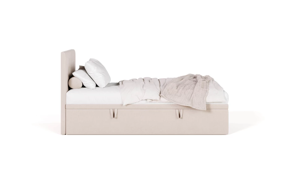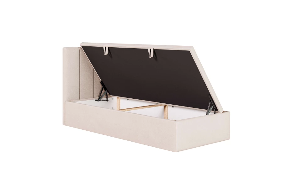 Funkcjonalny pojemnik na pościel zamocowany jest na siłownikach gazowych. Dzięki temu jest łatwy w obsłudze i gwarantuje wygodę użytkowania. Pojemnik na pościel to praktyczny sposób na przechowywanie pościeli, koców, czy innych przedmiotów, które mogą niepotrzebnie zajmować miejsce w sypialni.