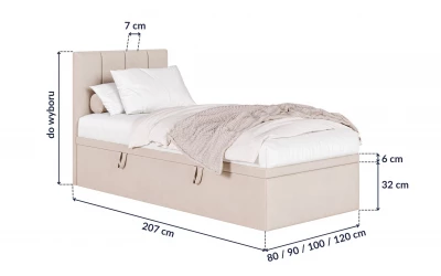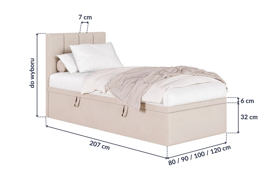 ● długość: 207 cm, szerokość: 100 cm, powierzchnia spania: 100x200 cm,