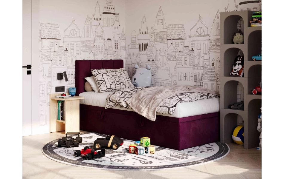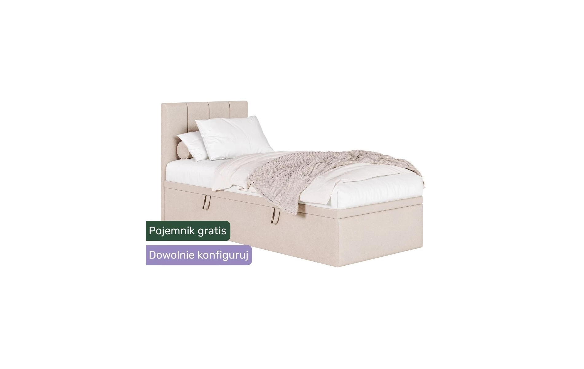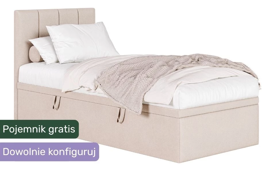 KOMPLETNY ZESTAW - Łóżko jest w zestawie z pojemnikiem na pościel i stelażem.