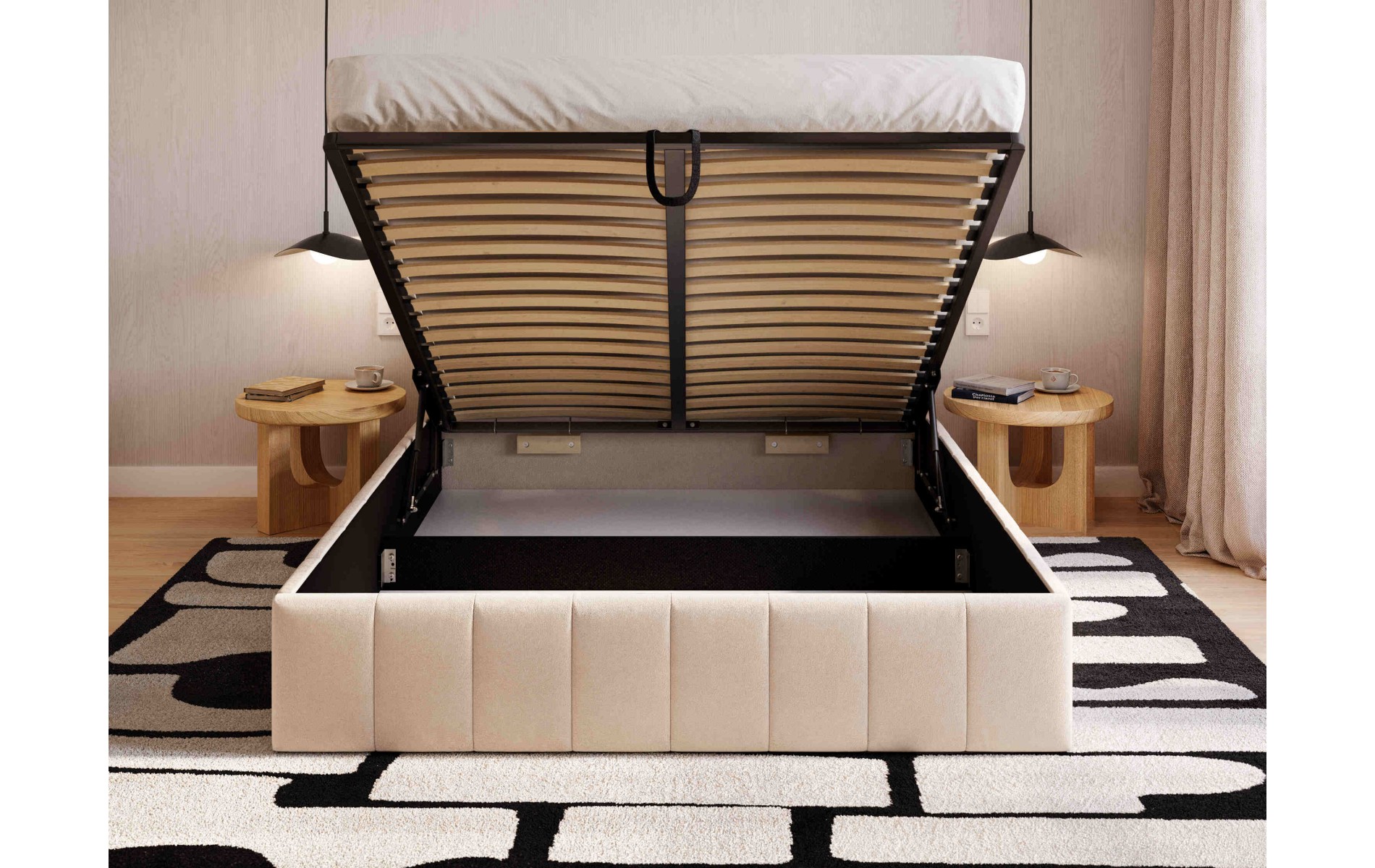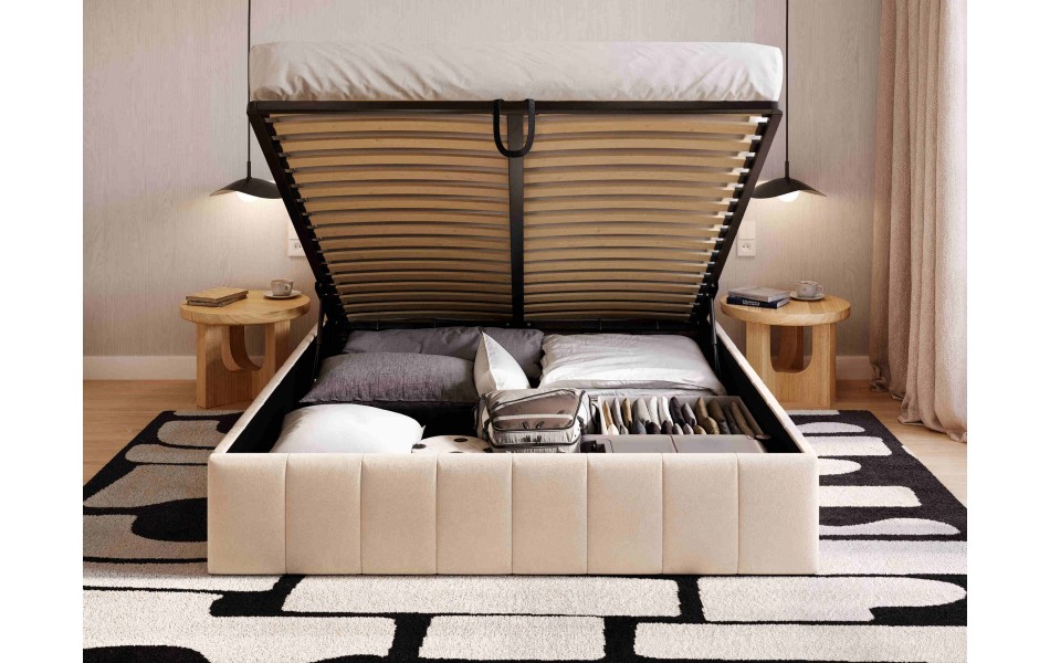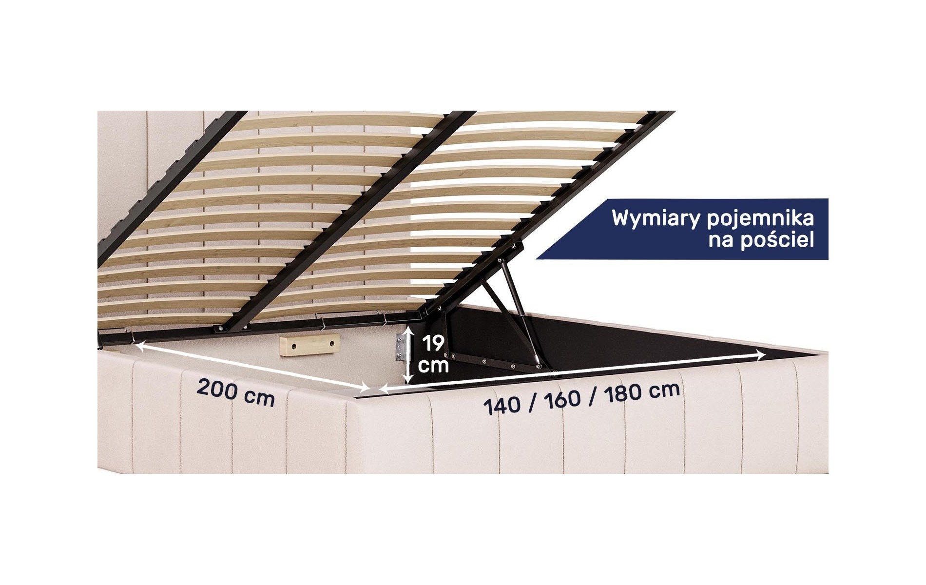 Więcej miejsca bez dodatkowych mebli. Pojemnik pod łóżkiem pozwala trzymać kołdry, poduszki i sezonowe tekstylia „pod ręką”, a sypialnia wygląda po prostu czyściej i spokojniej.