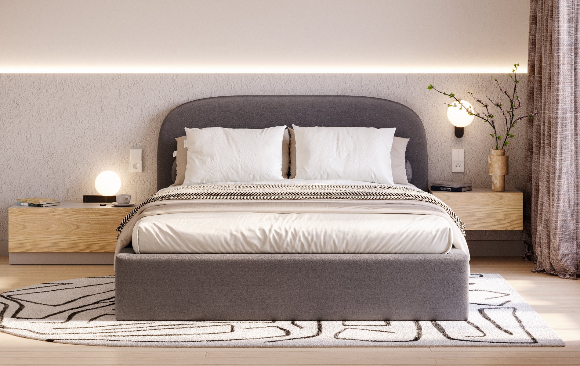 LunaBed SIRIUS to łóżko zaprojektowane z myślą o codziennym komforcie i solidnym wykonaniu. Miękki, tapicerowany zagłówek zapewnia wygodne oparcie, a pod nim znajduje się praktyczny pojemnik na pościel. Proporcje bryły są uniwersalne, dzięki czemu model dobrze prezentuje się zarówno w mniejszych, jak i większych wnętrzach.