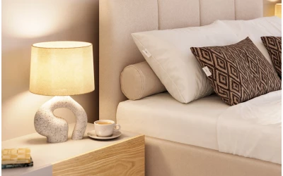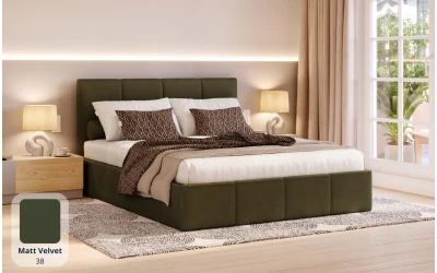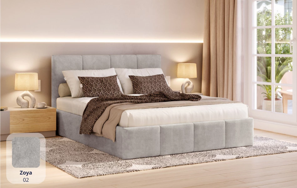 LunaBed LYRA przyciąga uwagę miękkimi liniami i efektownym pikowaniem – zarówno na wezgłowiu, jak i na froncie łóżka. To model, który buduje przytulną atmosferę w sypialni, a jednocześnie wygląda nowocześnie i spójnie w różnych stylach wnętrz. W zestawie znajduje się pojemnik na pościel oraz elastyczny stelaż na metalowej ramie – praktycznie wszystko, czego potrzebujesz na co dzień.