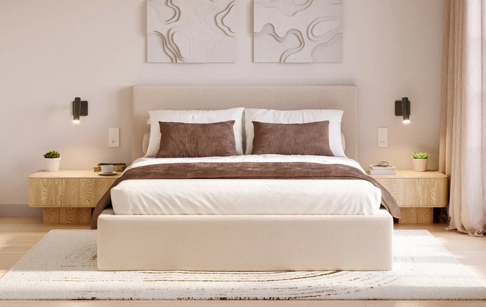 LunaBed ALTAIR to idealne rozwiązanie do nowoczesnych, także tych mniejszych wnętrz - łączy stylową, spokojną bryłę z funkcjonalnością na co dzień. Miękkie wezgłowie zapewnia wygodne podparcie, co sprawdzi się podczas relaksu z książką lub filmem. Dodatkowo praktyczny pojemnik na pościel pozwala zyskać więcej miejsca do przechowywania bez dokładania kolejnych mebli.