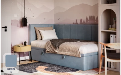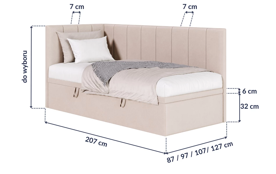 AURORA – łóżko pojedyncze narożne z pojemnikiem