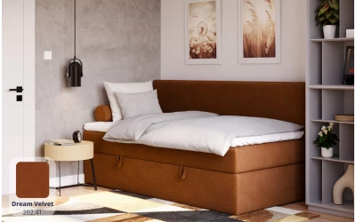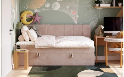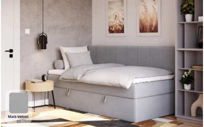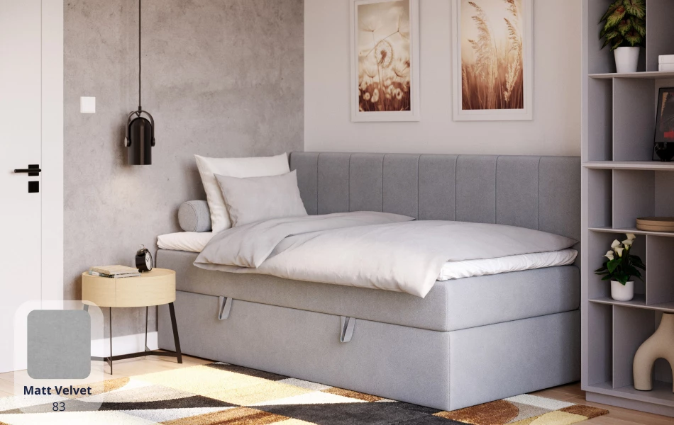 LunaBed VESTA to uniwersalne łóżko jednoosobowe w stylu kontynentalnym – materac sprężynowy jest wbudowany w konstrukcję łóżka, a całość uzupełnia topper, który podnosi komfort snu i sprawia, że powierzchnia spania jest przyjemnie „miękka”. Prosta, symetryczna forma dobrze odnajdzie się w różnych aranżacjach – od pokoju młodzieżowego, przez pokój gościnny, aż po komfortowe miejsce do spania dla osoby dorosłej.