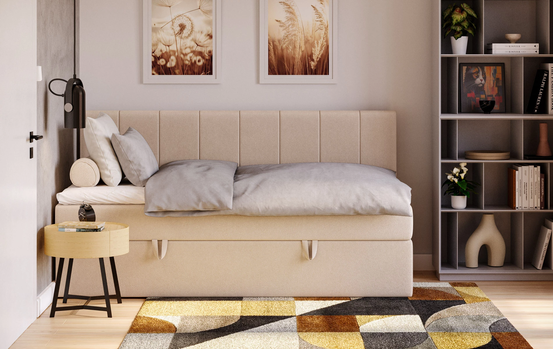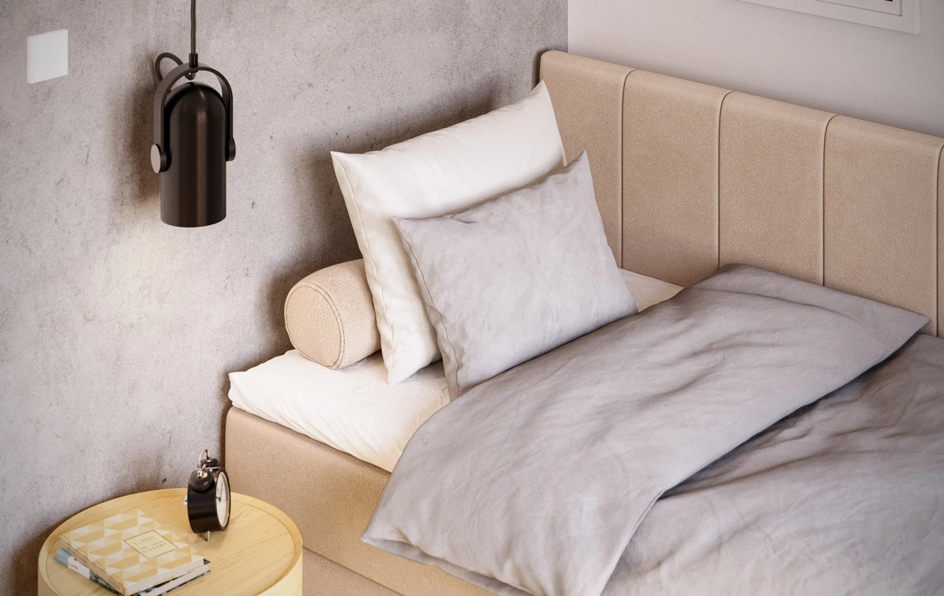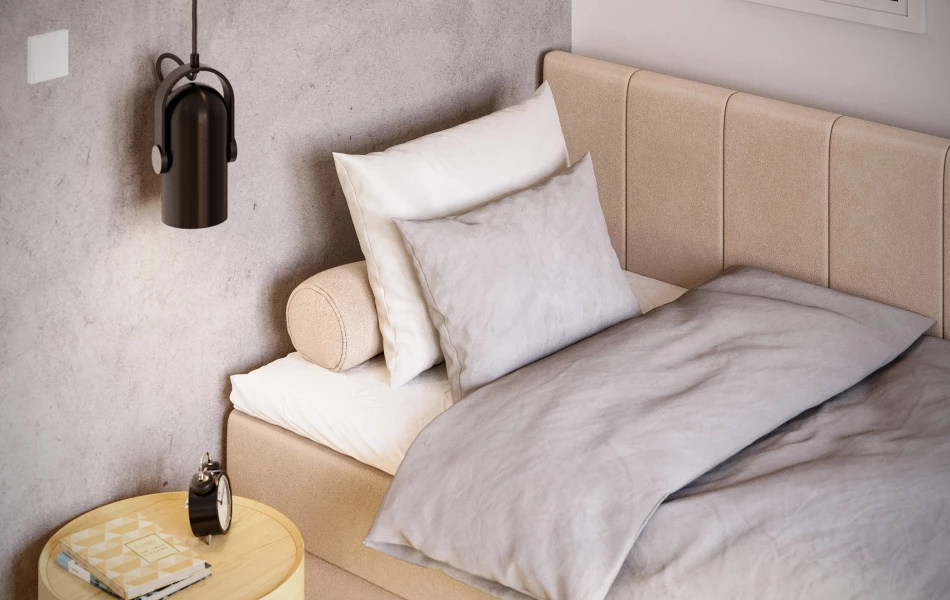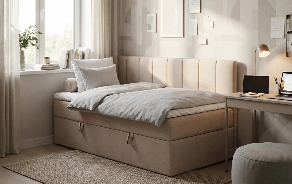Tapicerowane wezgłowie zapewnia wygodne oparcie, a zabudowana bryła łóżka nadaje wnętrzu uporządkowany, spokojny charakter. Jeśli kupujesz online, zwróć uwagę na 3 kluczowe cechy: