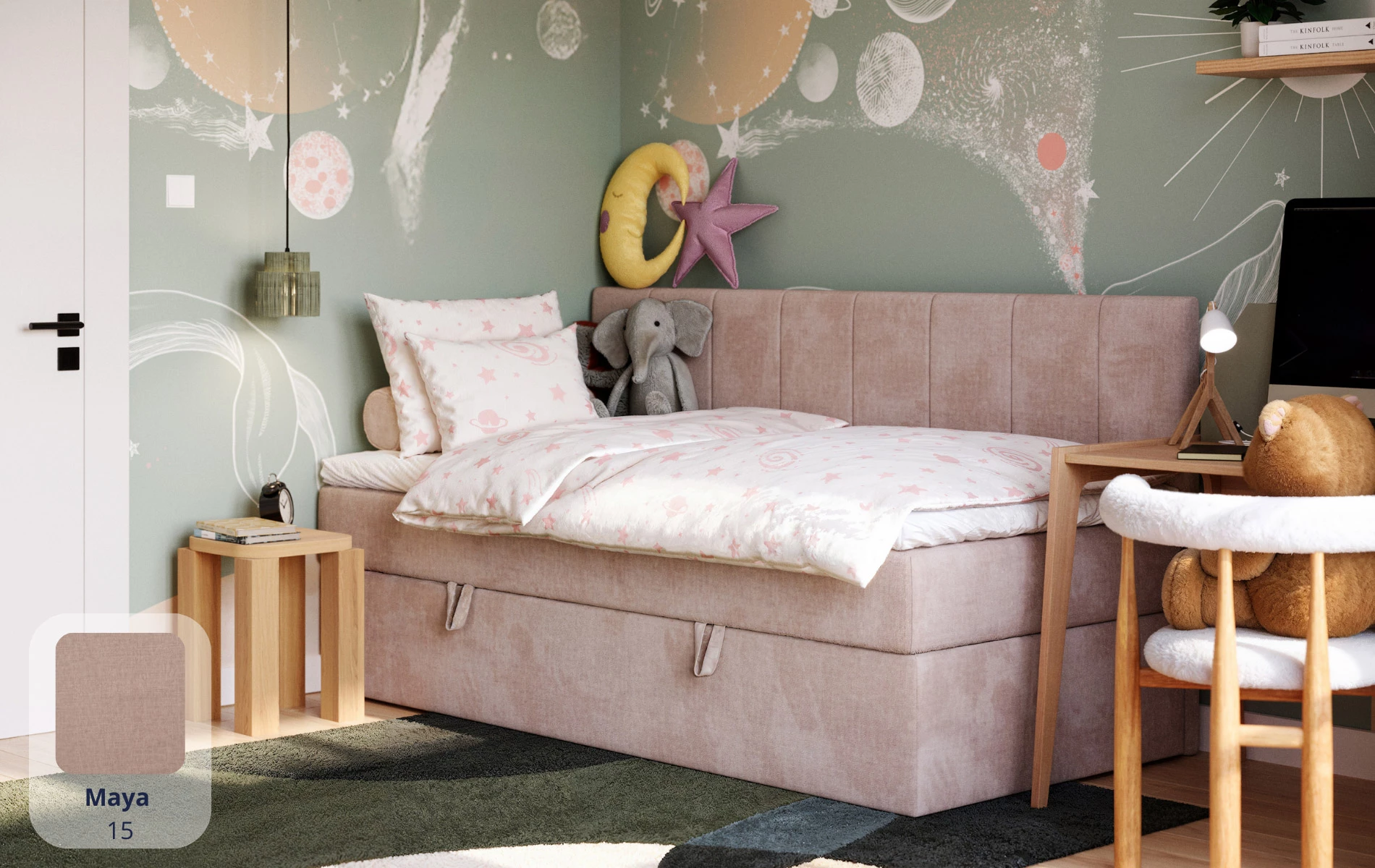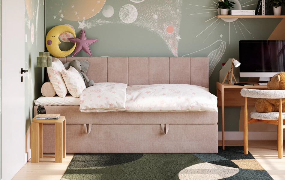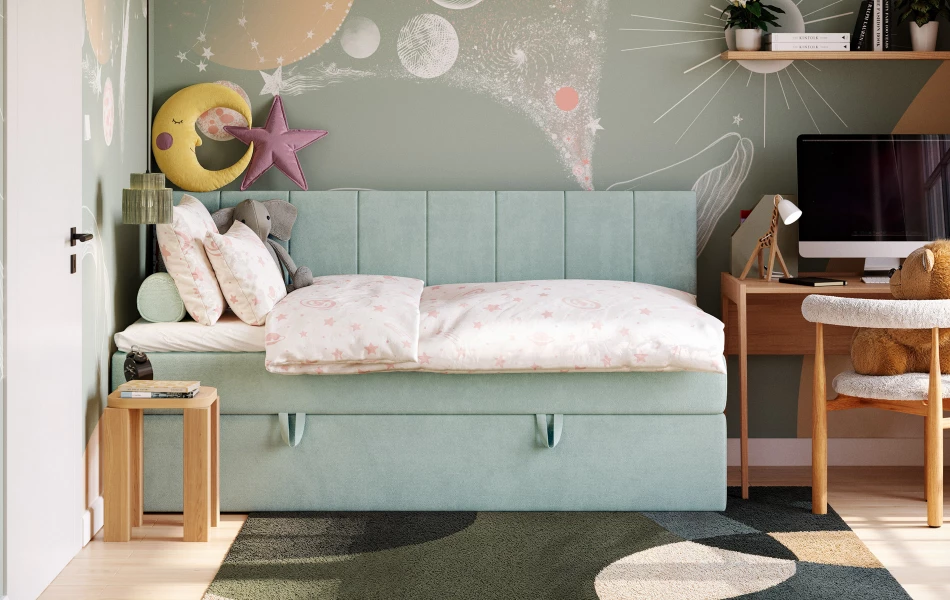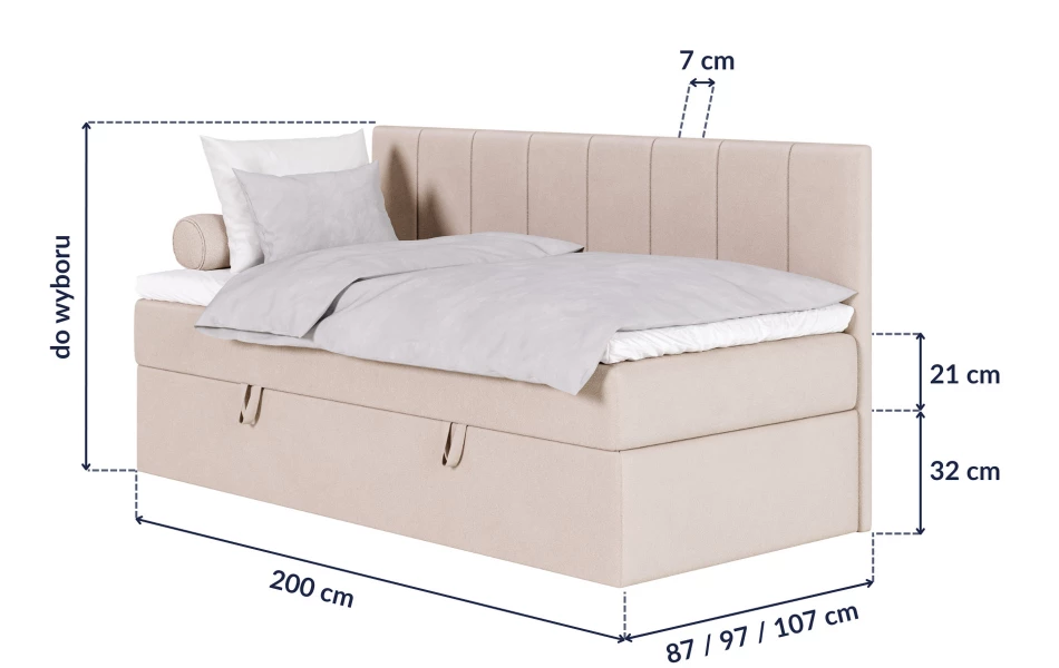 - ✔ Pojemnik na pościel w standardzie – więcej miejsca bez dodatkowych mebli