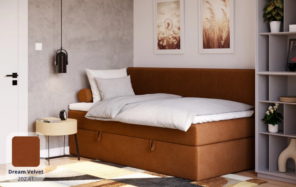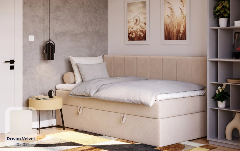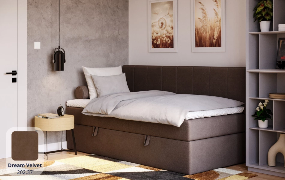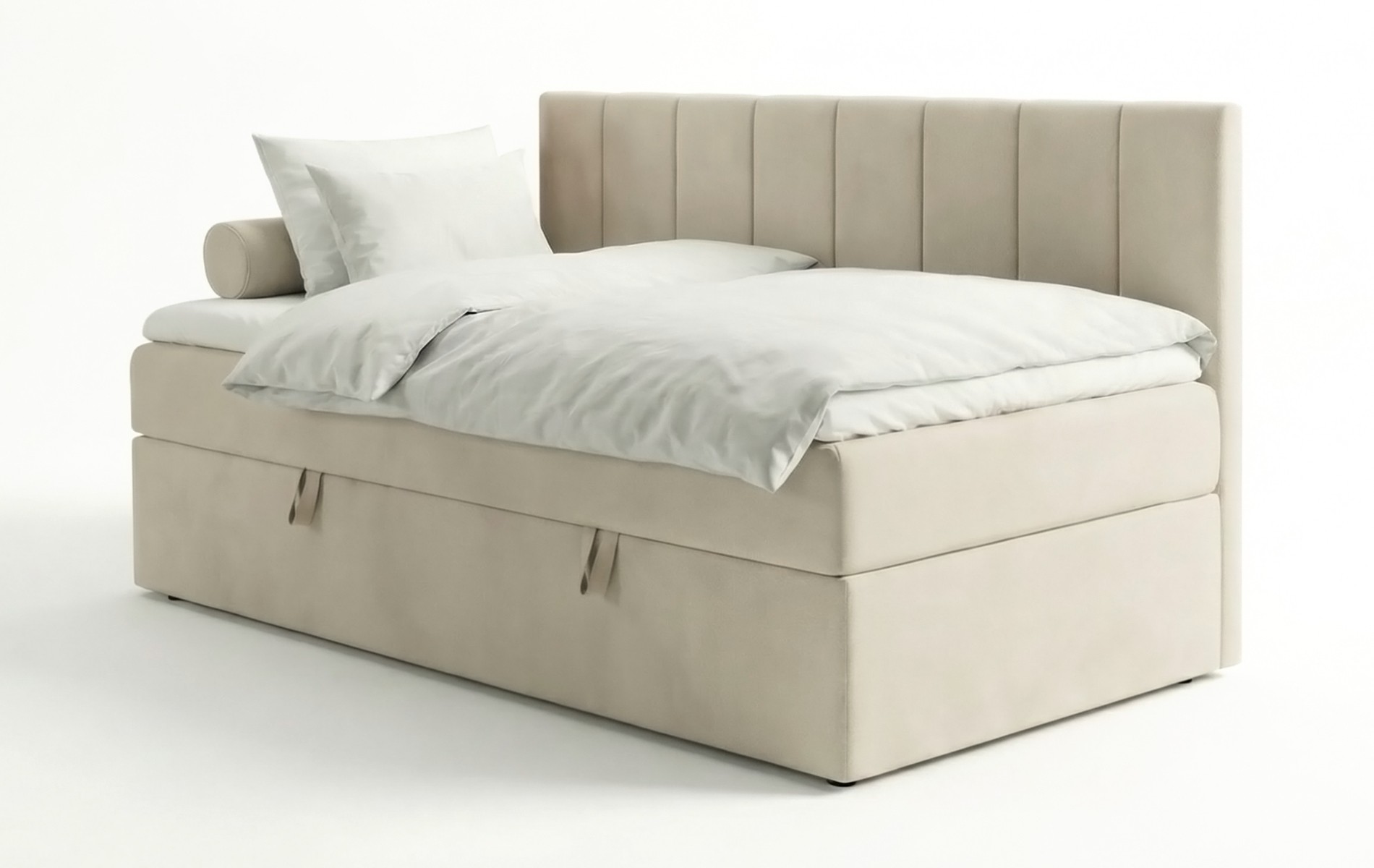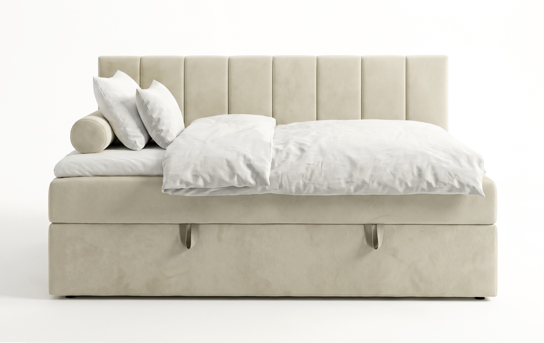 Komfort kontynentalny + funkcjonalność. VESTA łączy w sobie wygodę spania na łóżku kontynentalnym (wbudowany materac sprężynowy + topper) oraz praktyczny pojemnik – to świetne rozwiązanie, gdy chcesz mieć maksimum komfortu bez rezygnowania z miejsca do przechowywania.