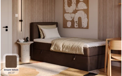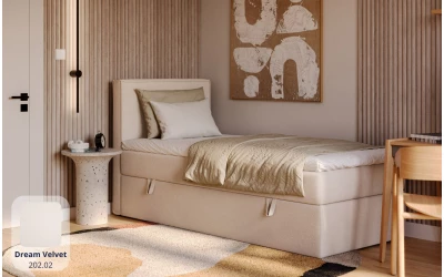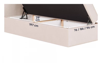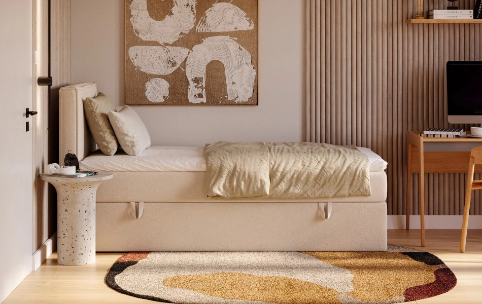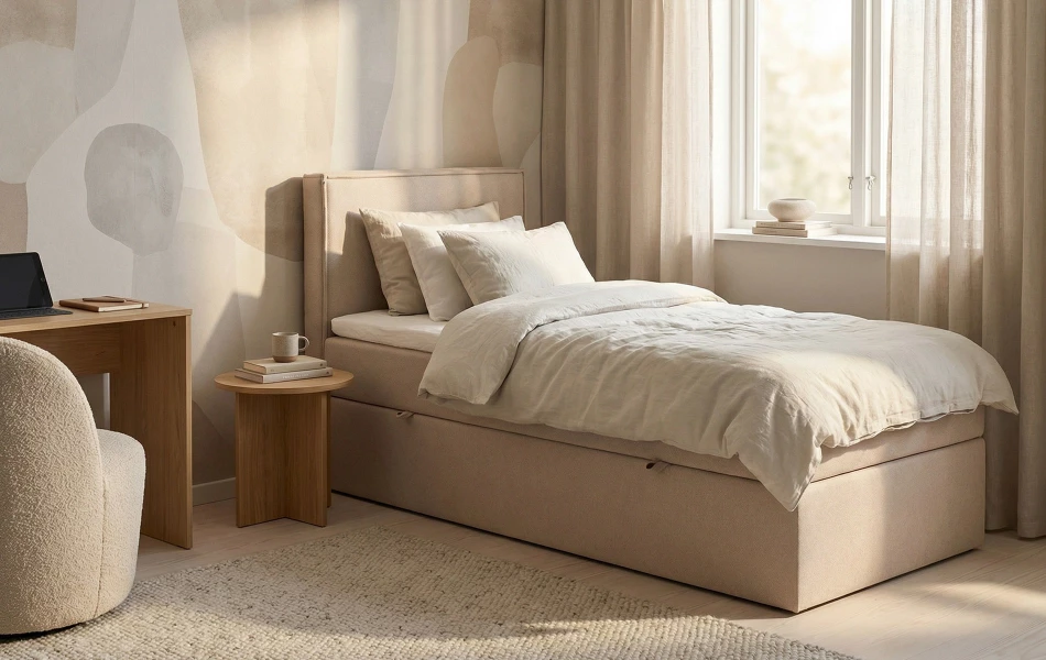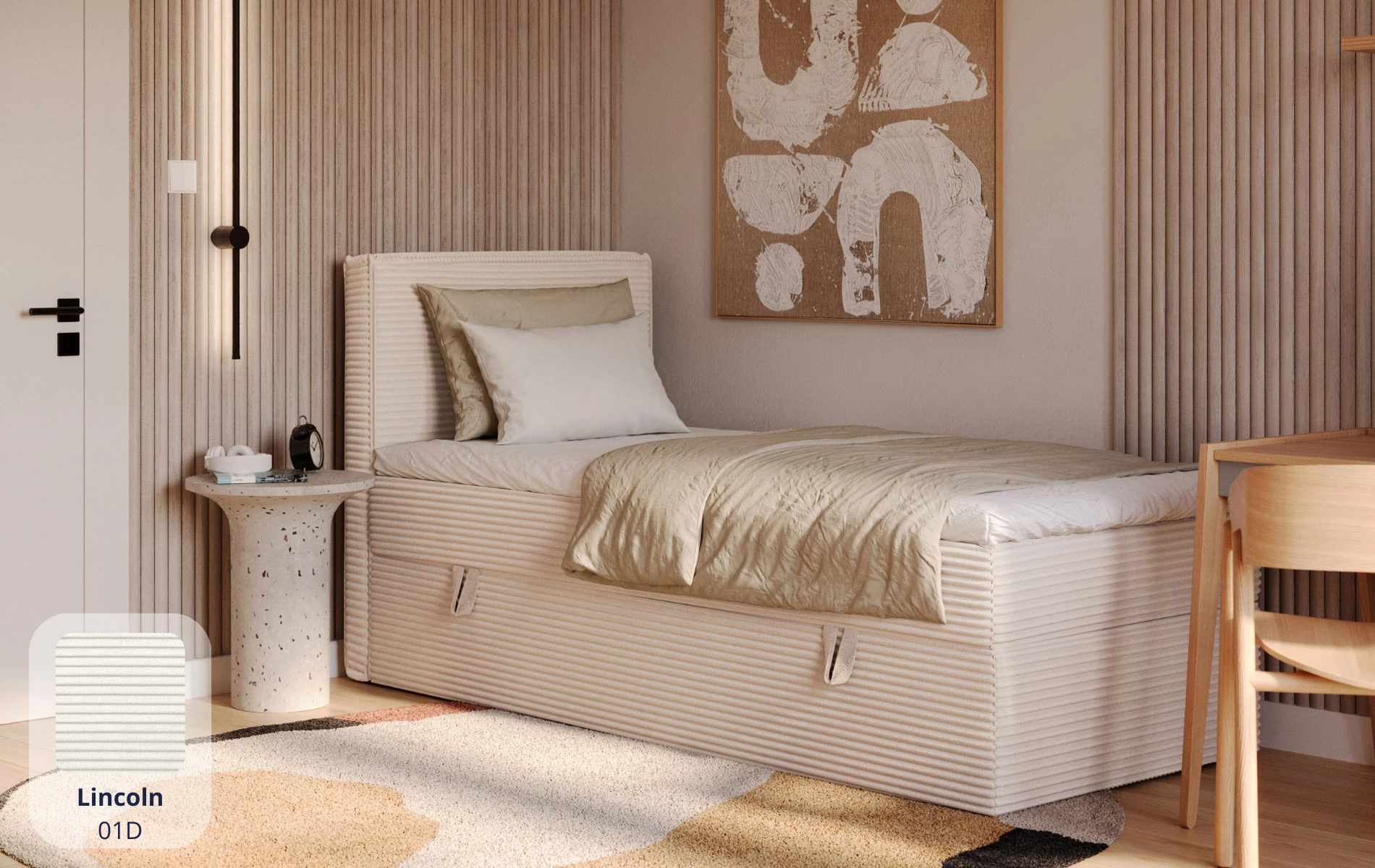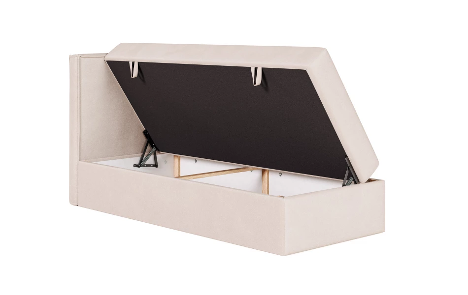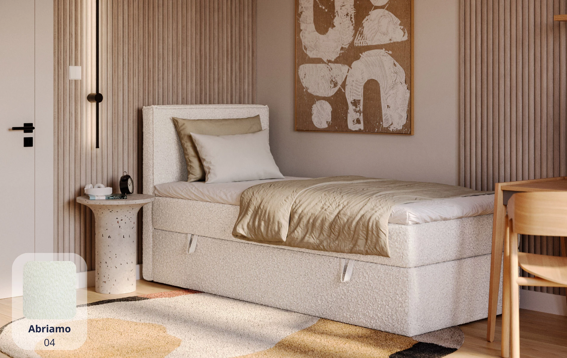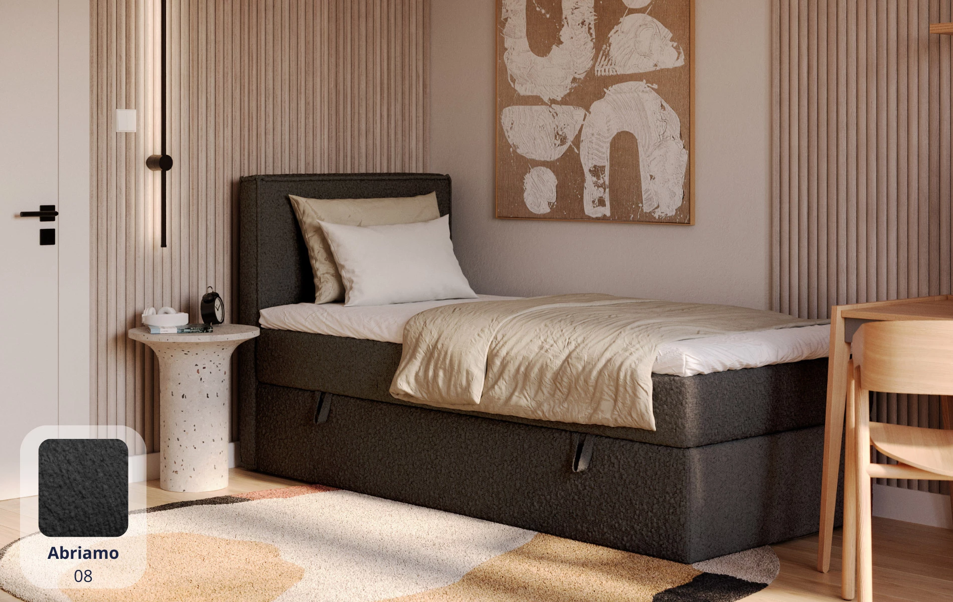 Komfort kontynentalny + funkcjonalność. CELESTE łączy wygodę spania na łóżku kontynentalnym (wbudowany materac sprężynowy + topper) z praktycznym pojemnikiem – bez kompromisów.