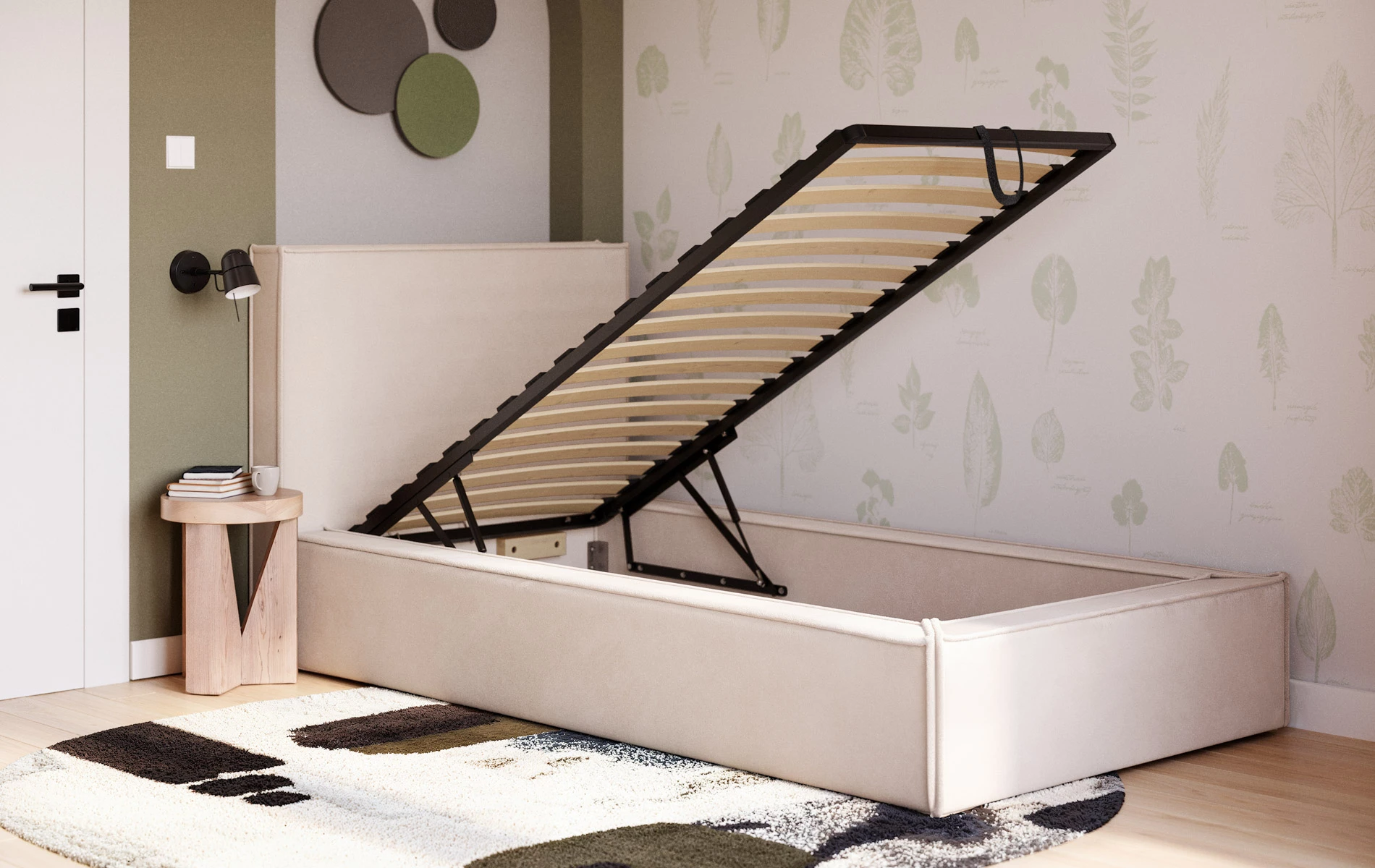 Wygodne użytkowanie. Rozwiązanie zostało zaprojektowane tak, aby korzystanie z pojemnika było proste i praktyczne w codziennym użytkowaniu – szczególnie wtedy, gdy łóżko stoi w mniejszym lub bardziej ustawionym pokoju.