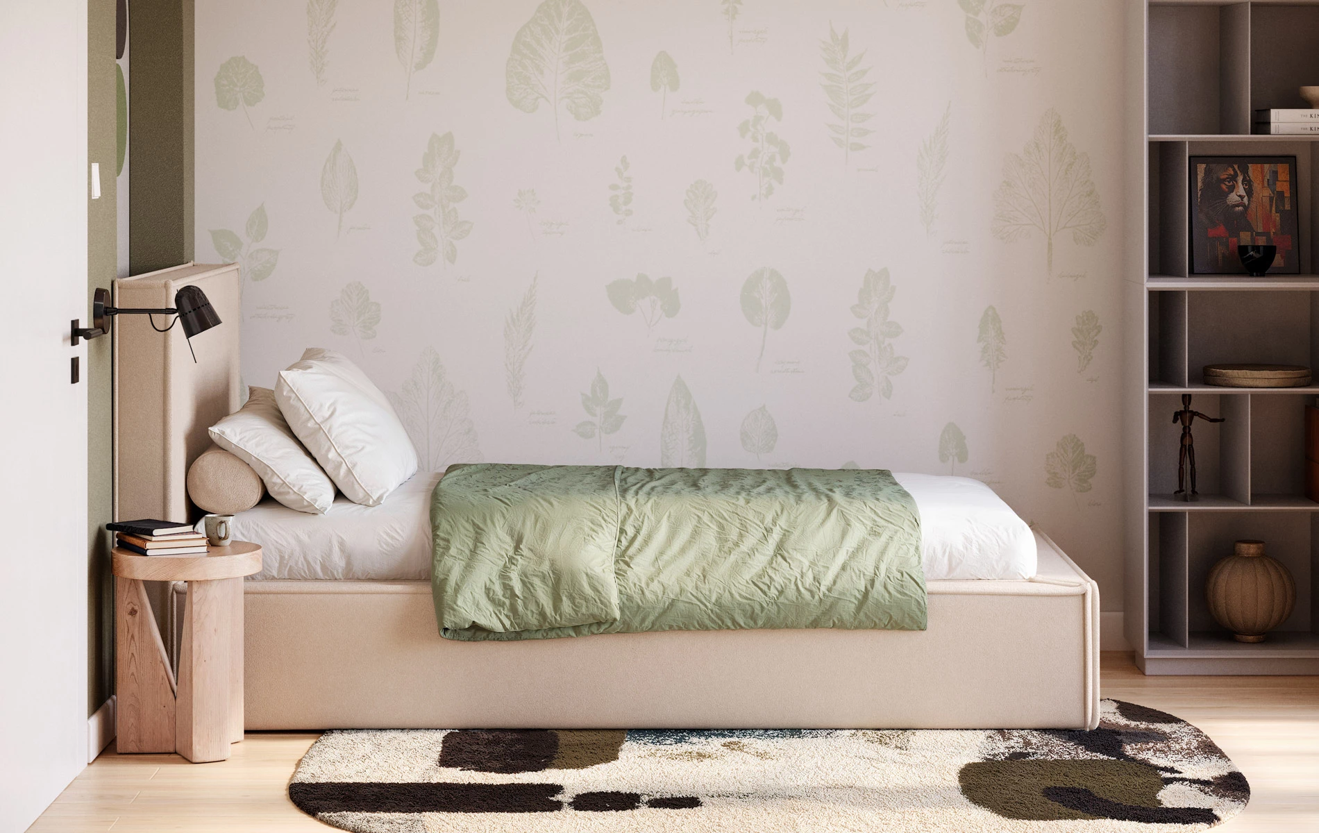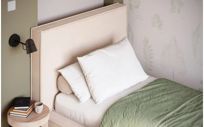 Estetyczna bryła. ERIS zachowuje spójny wygląd także w ciągu dnia – zabudowana konstrukcja sprawia, że łóżko wygląda jak dopracowany element wnętrza, a nie „przypadkowy mebel”.