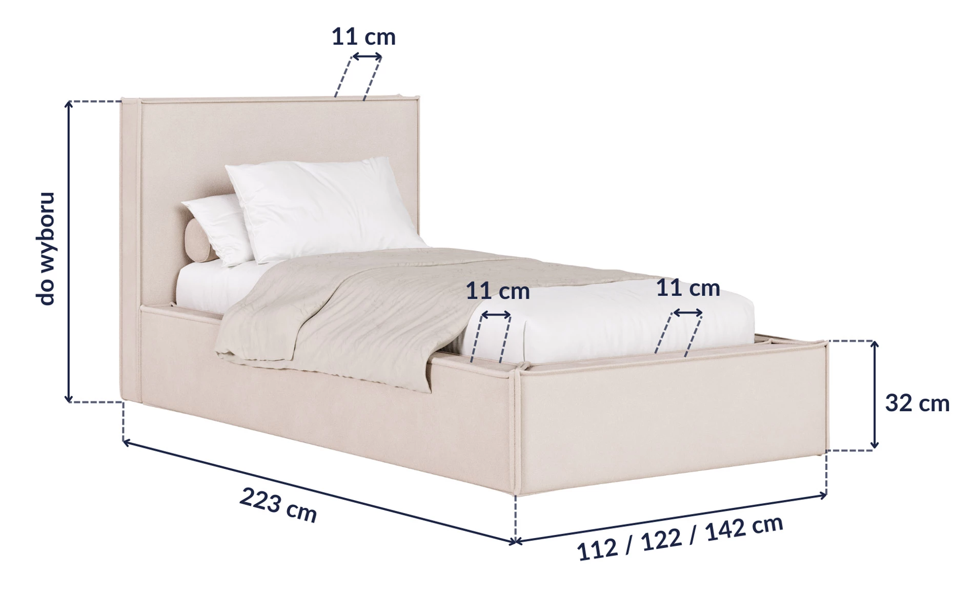 - ✔ Szerokość ściany za łóżkiem (np. pod szafki nocne)