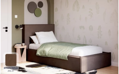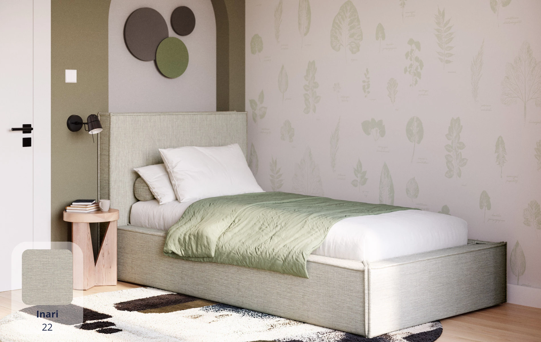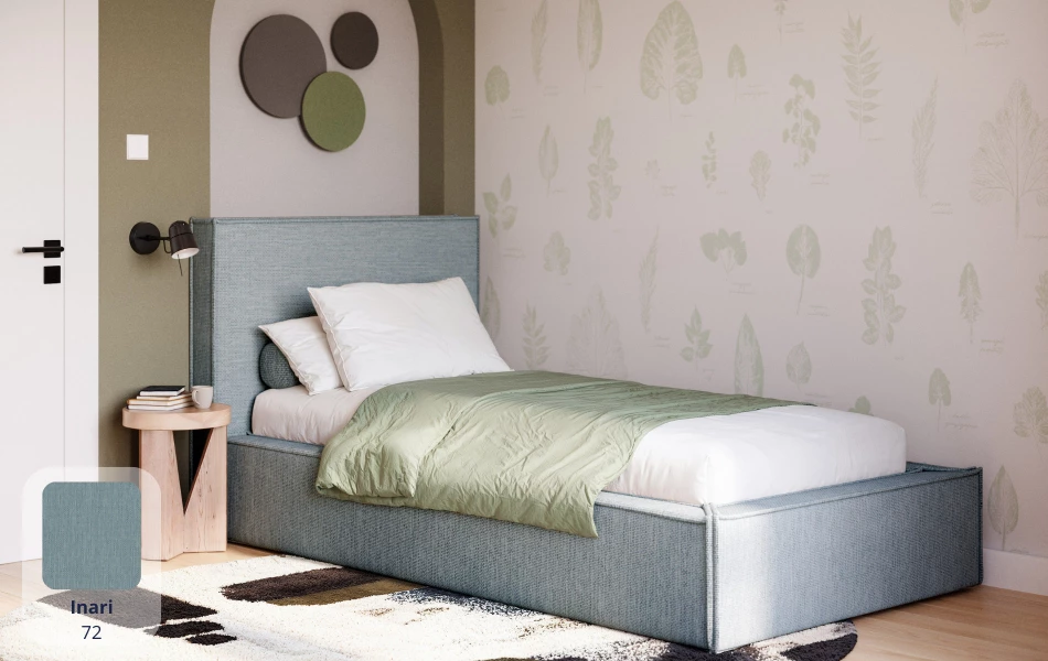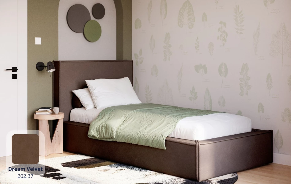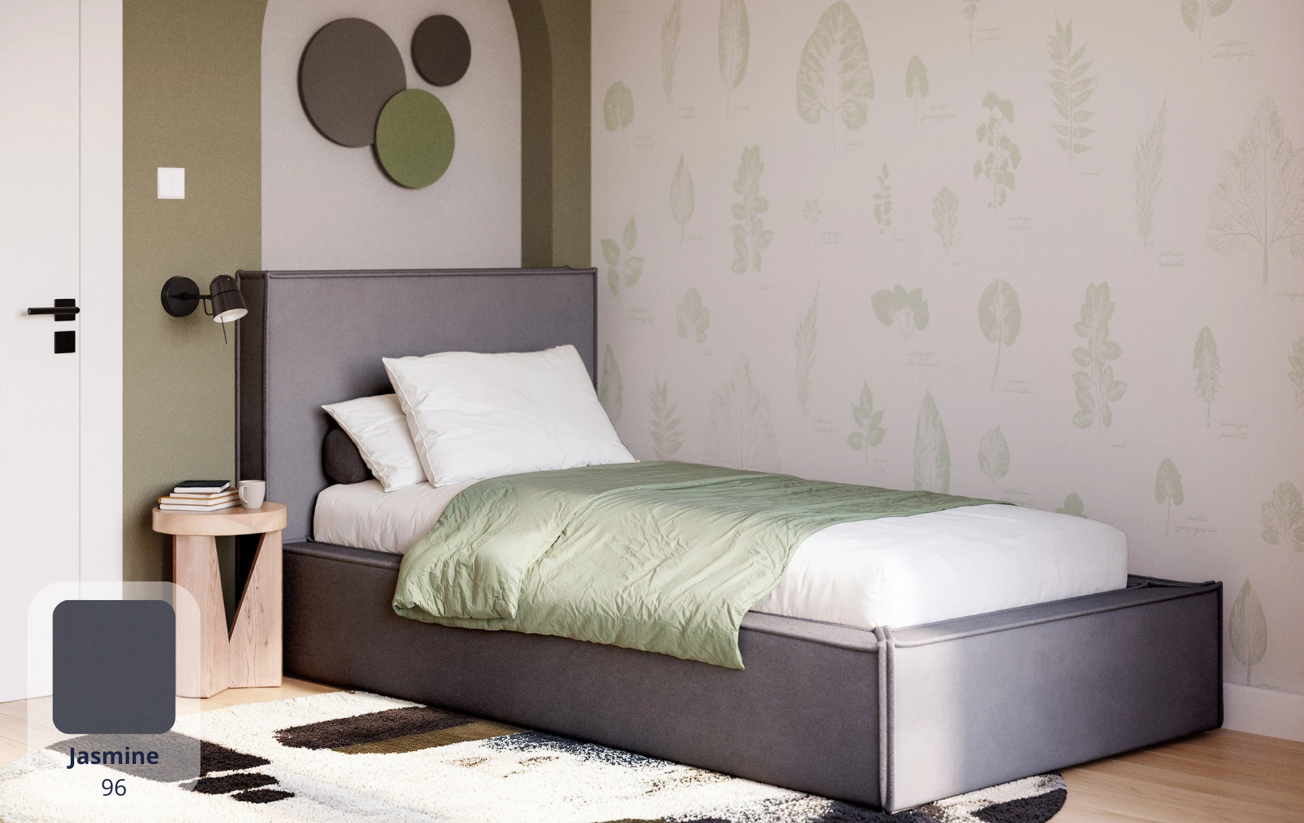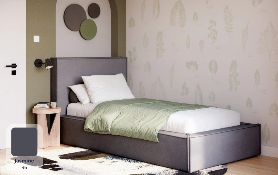 LunaBed ERIS to łóżko jednoosobowe o nowoczesnej, uporządkowanej bryle, które dobrze sprawdzi się w pokojach, gdzie liczy się praktyczność i spójny wygląd wnętrza. Tapicerowane wezgłowie zapewnia wygodne oparcie podczas odpoczynku, a konstrukcja łóżka prezentuje się estetycznie zarówno w sypialni, jak i w pokoju młodzieżowym czy gościnnym.