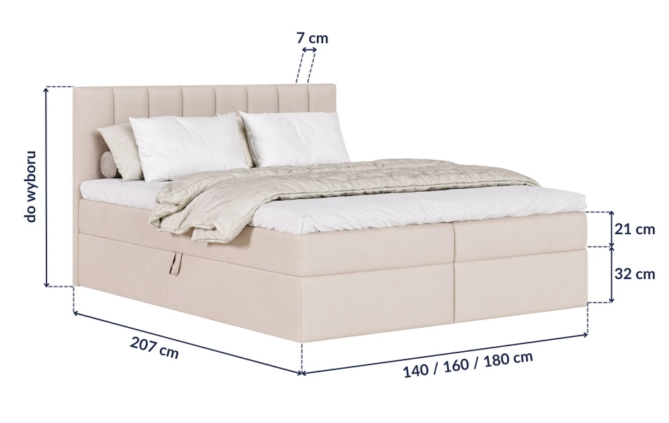 - ✔ Wysoka, elegancka bryła – wygodne wstawanie i efekt premium w sypialni