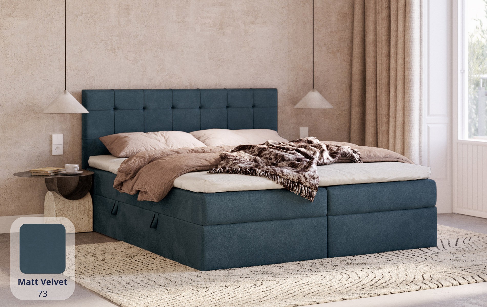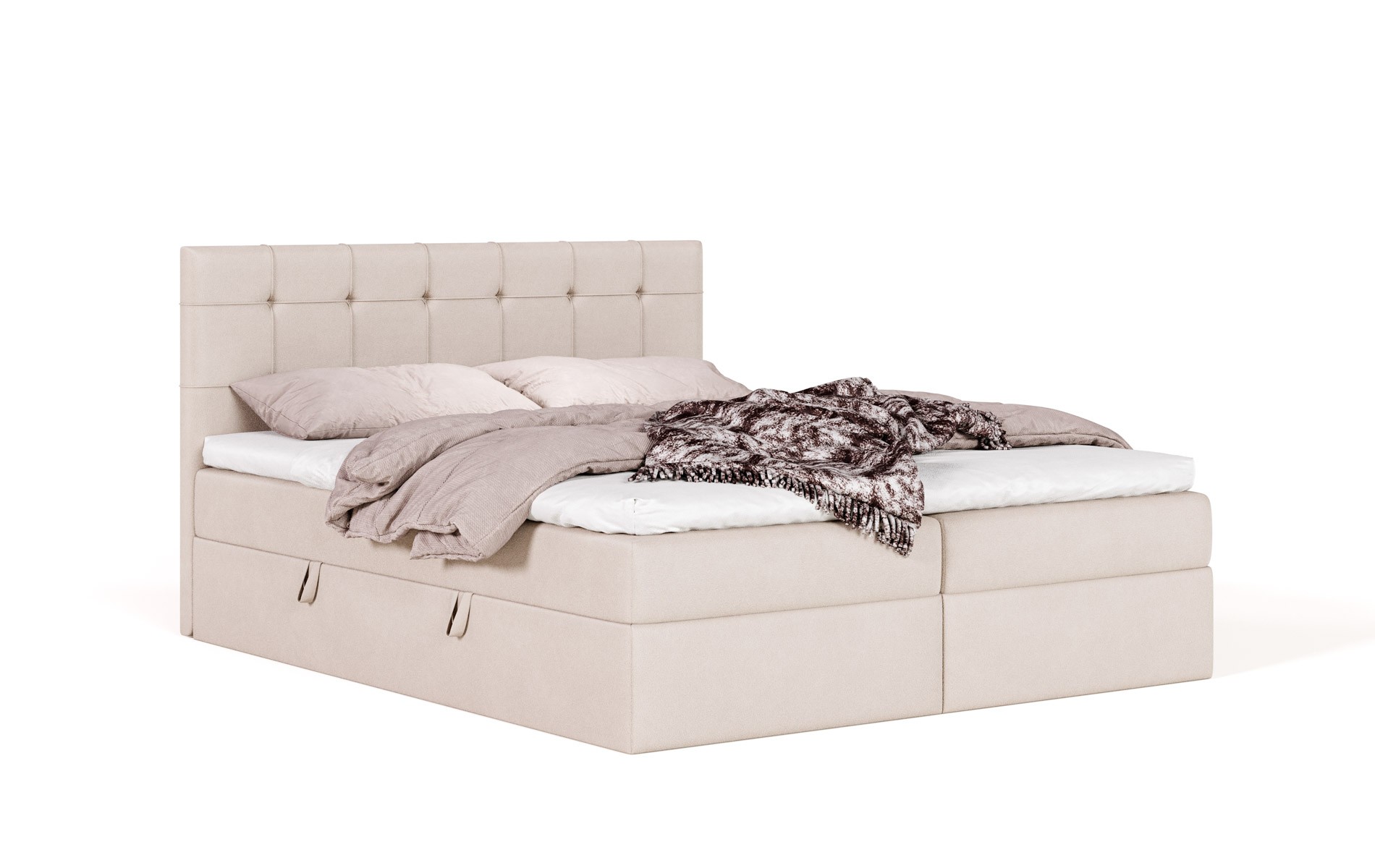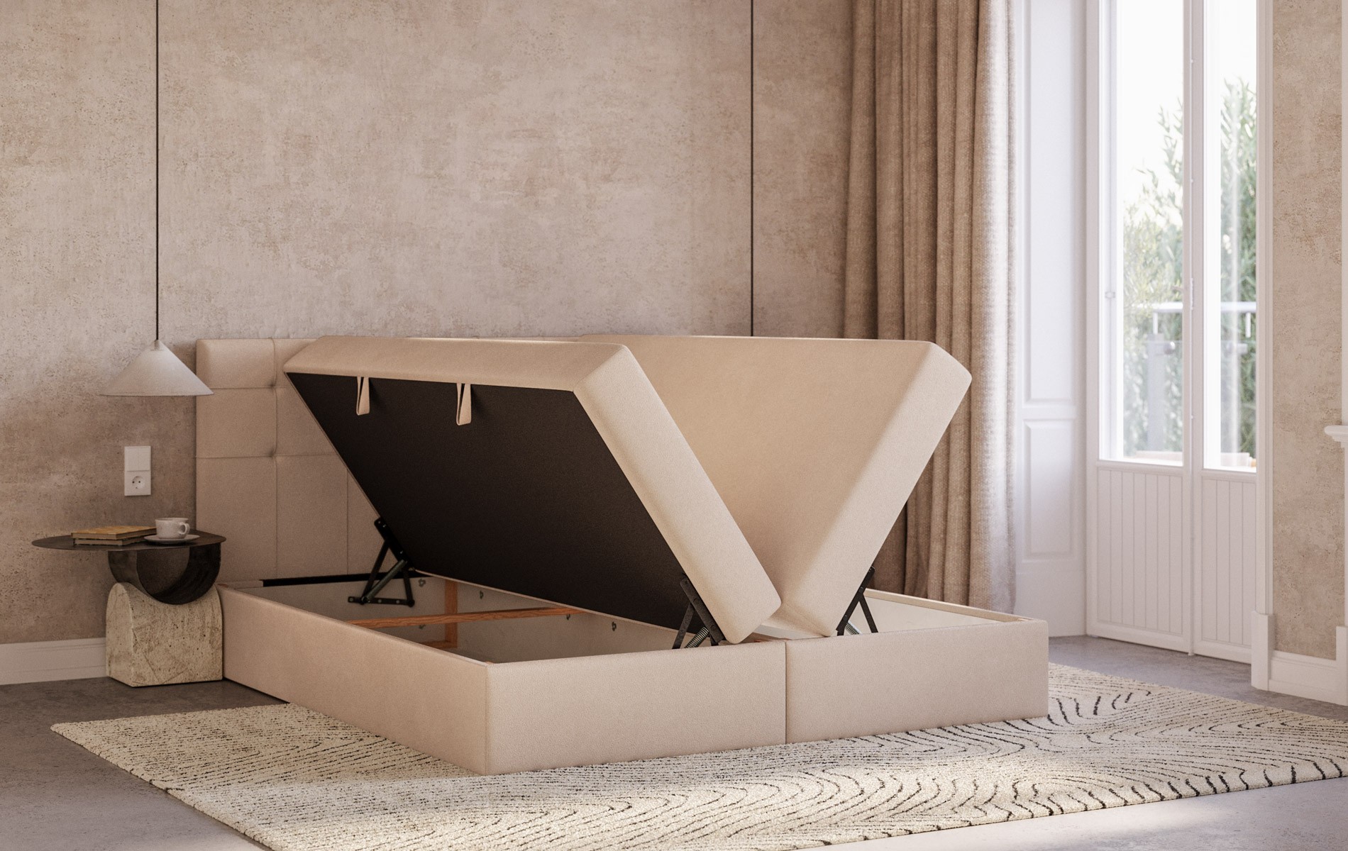 Komfort bez kompromisów. CALLISTO łączy to, co najważniejsze w łóżku kontynentalnym (wbudowany materac sprężynowy + topper) z dodatkową przestrzenią do przechowywania. To dobre rozwiązanie, gdy chcesz mieć wygodę spania i porządek w sypialni jednocześnie.