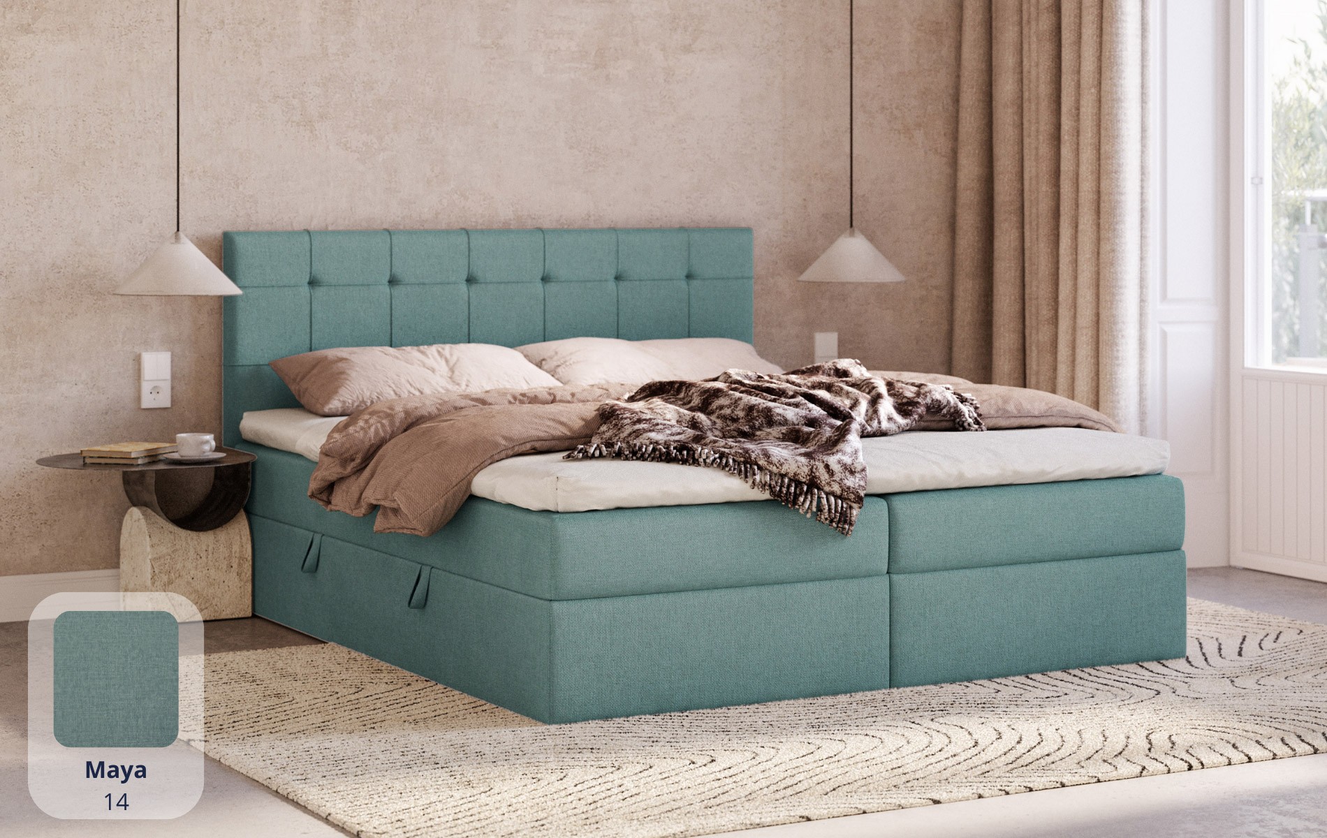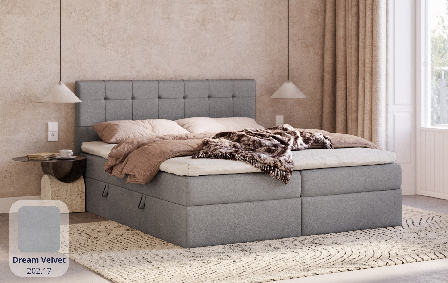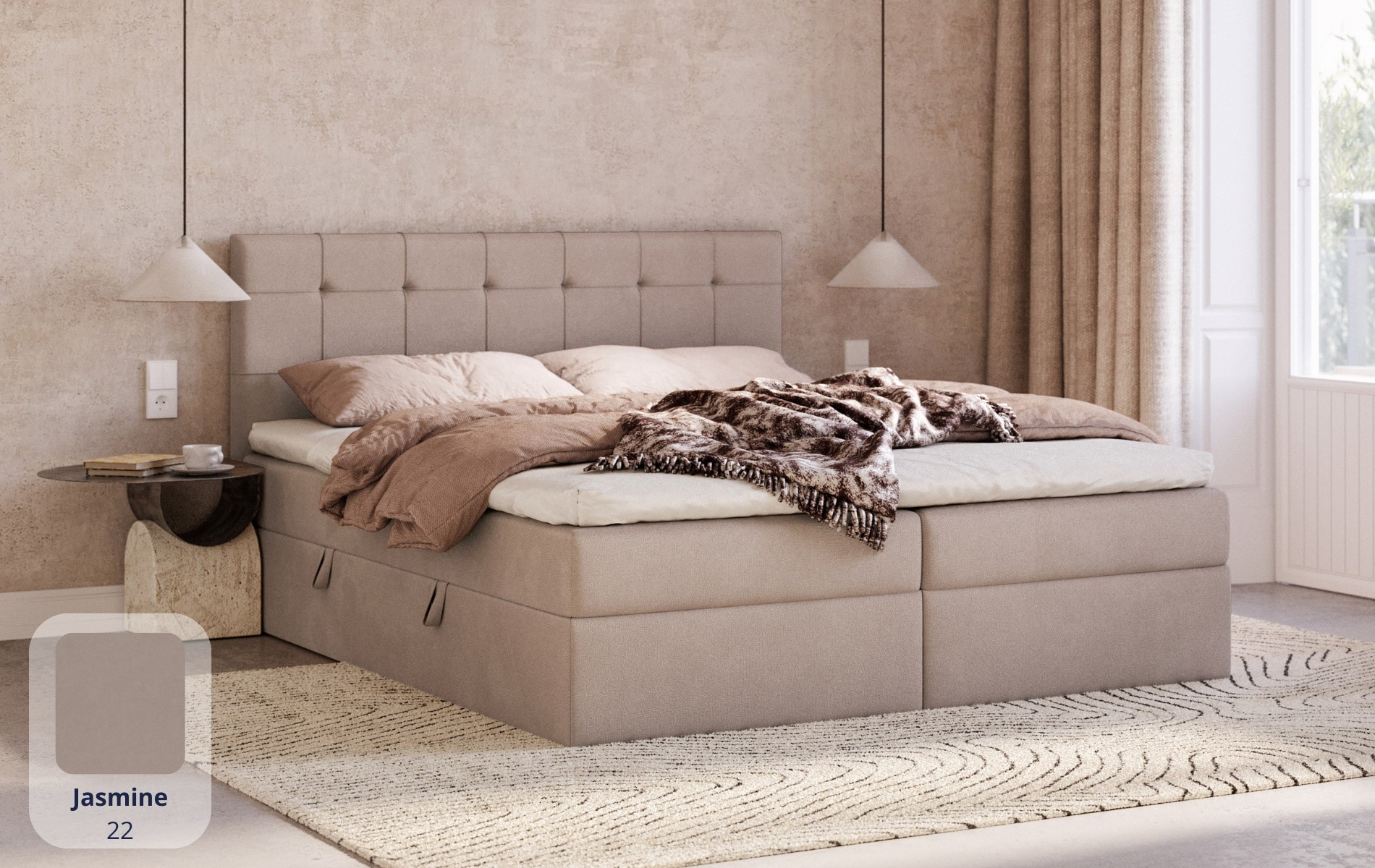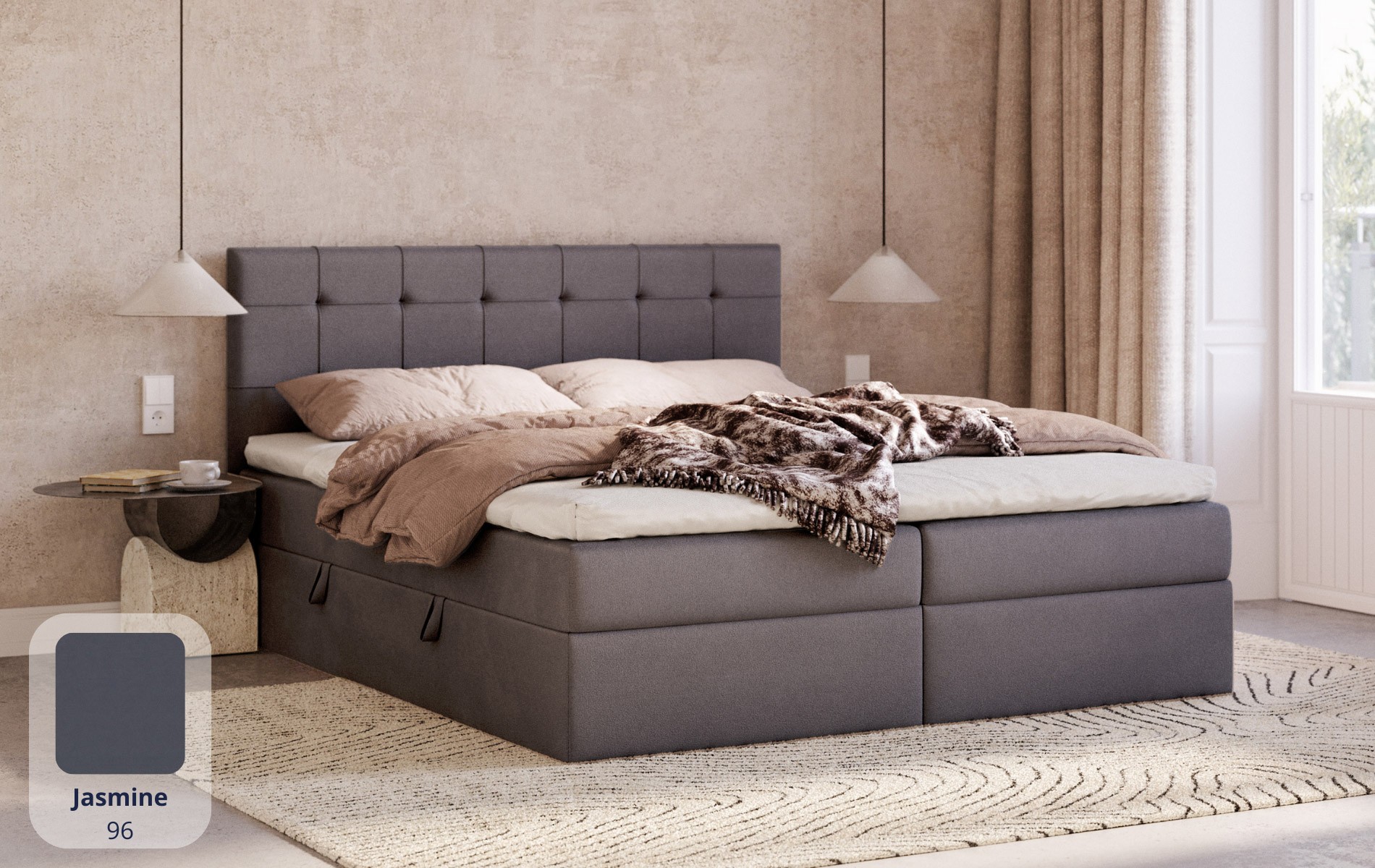 Komfort bez kompromisów. CALLISTO łączy to, co najważniejsze w łóżku kontynentalnym (wbudowany materac sprężynowy + topper) z dodatkową przestrzenią do przechowywania. To dobre rozwiązanie, gdy chcesz mieć wygodę spania i porządek w sypialni jednocześnie.