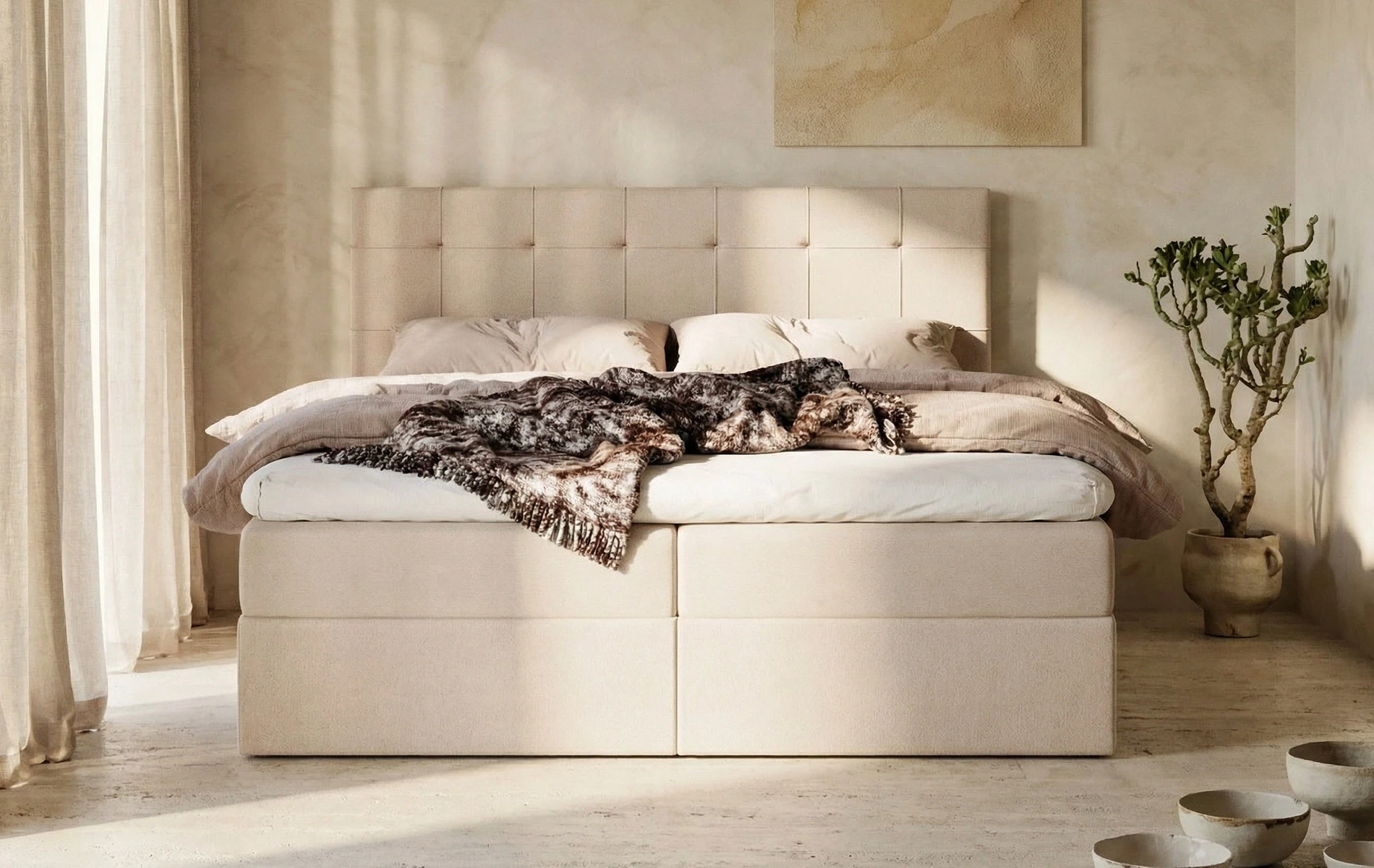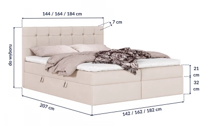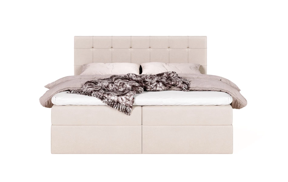 - ✔ Komfort kontynentalny: wbudowany materac + topper