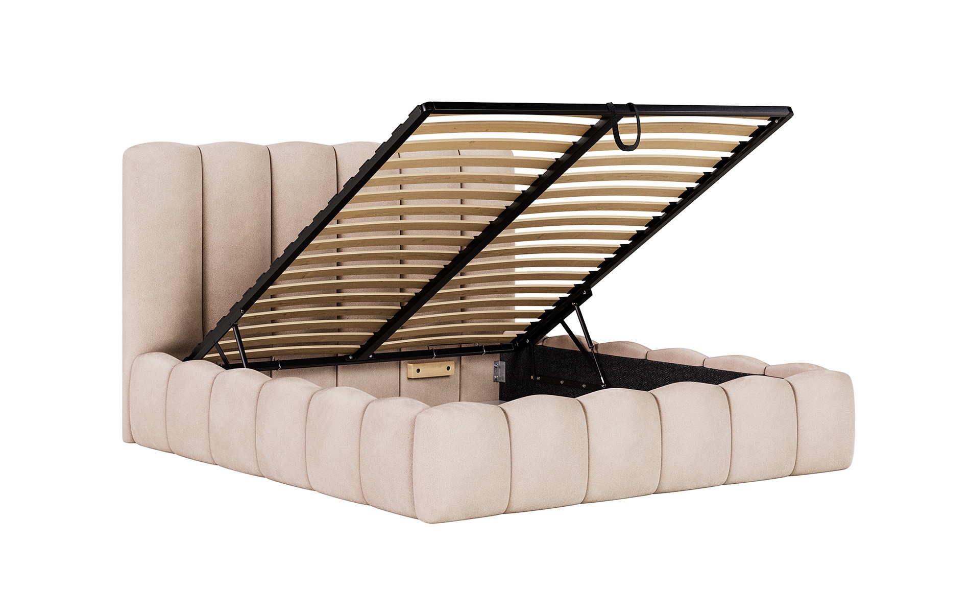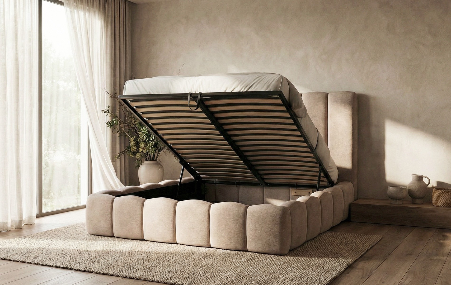 Codzienny komfort użytkowania. Dostęp do pojemnika jest wygodny dzięki podnoszonemu stelażowi wspomaganemu siłownikami – łatwiej otworzysz łóżko i bez problemu sięgniesz do środka.