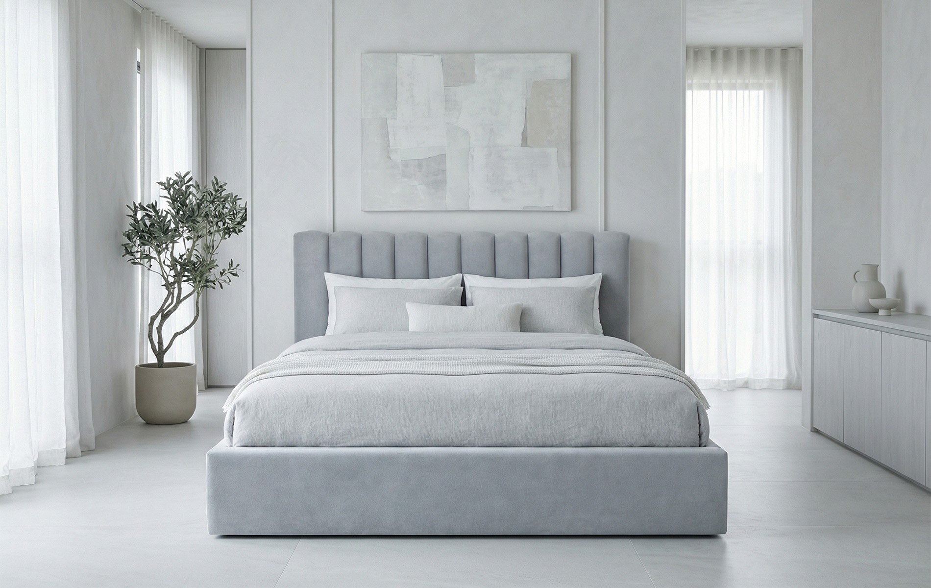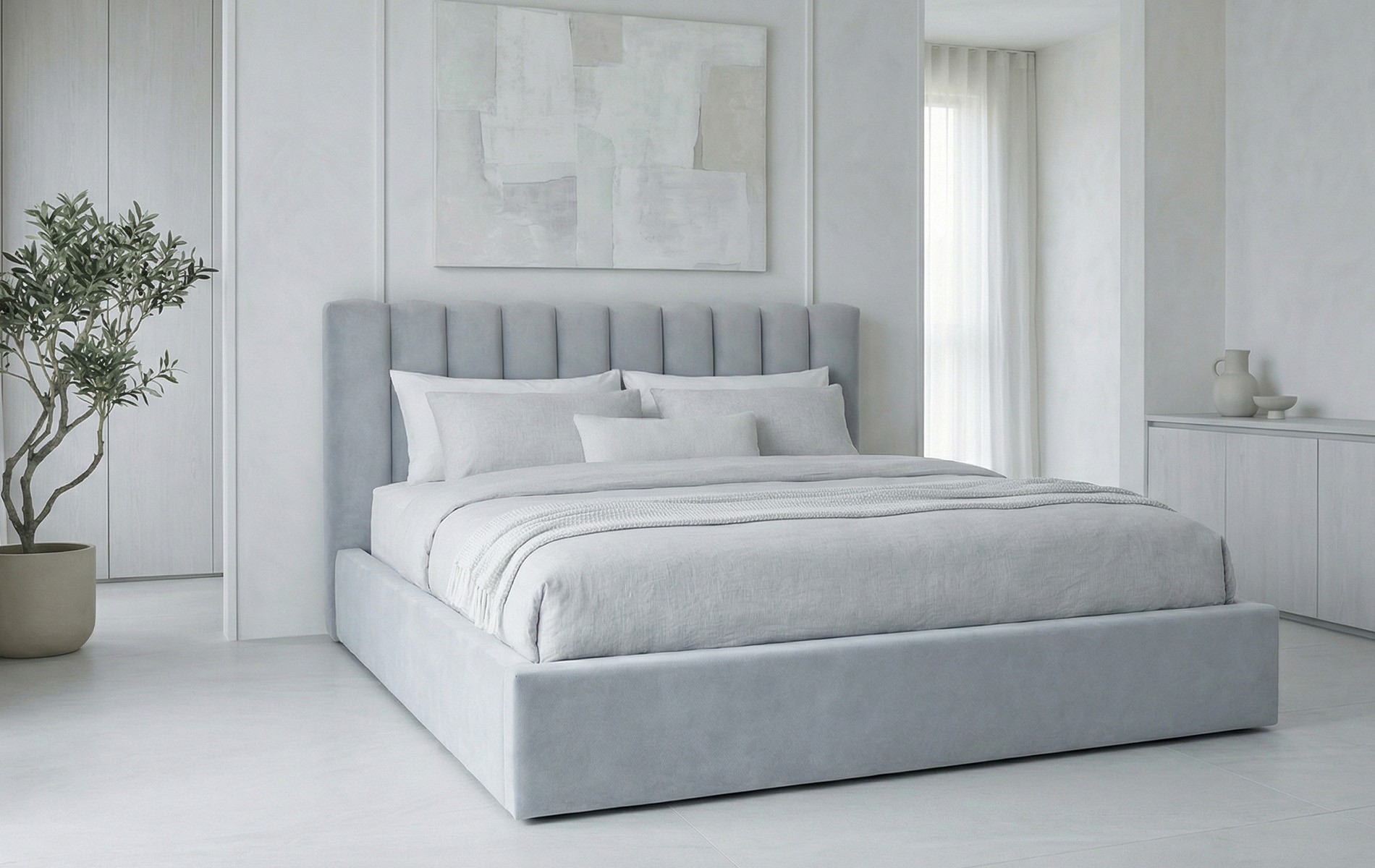 LunaBED TAURUS to model dla osób, które lubią nowoczesną prostotę, ale z miękkim, przytulnym wykończeniem. Charakterystyczne, pionowe segmenty wezgłowia porządkują całą bryłę i dodają jej elegancji – to łóżko dobrze wygląda zarówno w jasnych, minimalistycznych wnętrzach, jak i w mocniejszych, ciemnych aranżacjach.