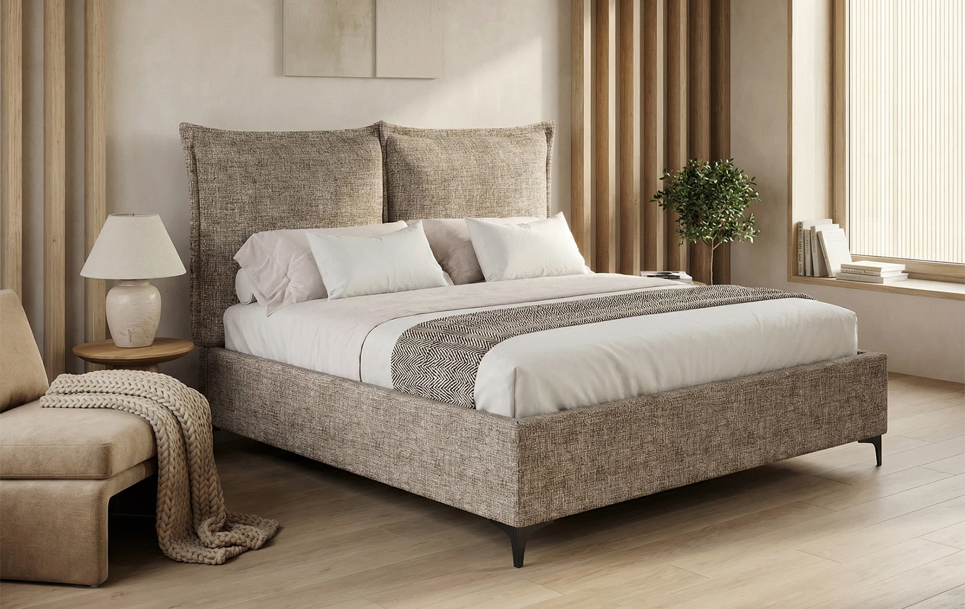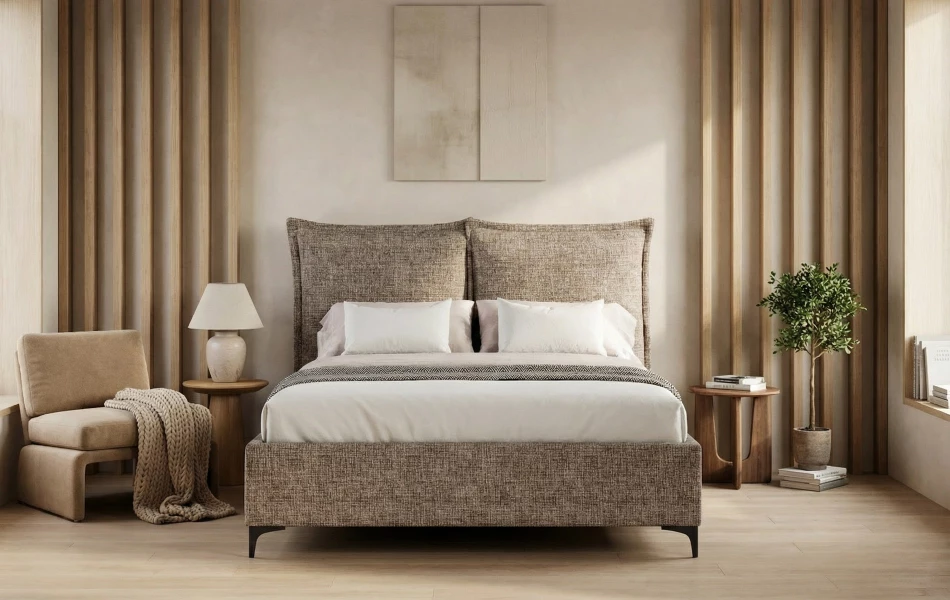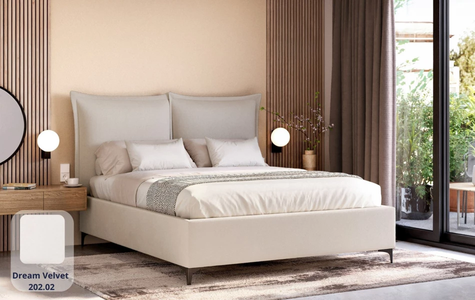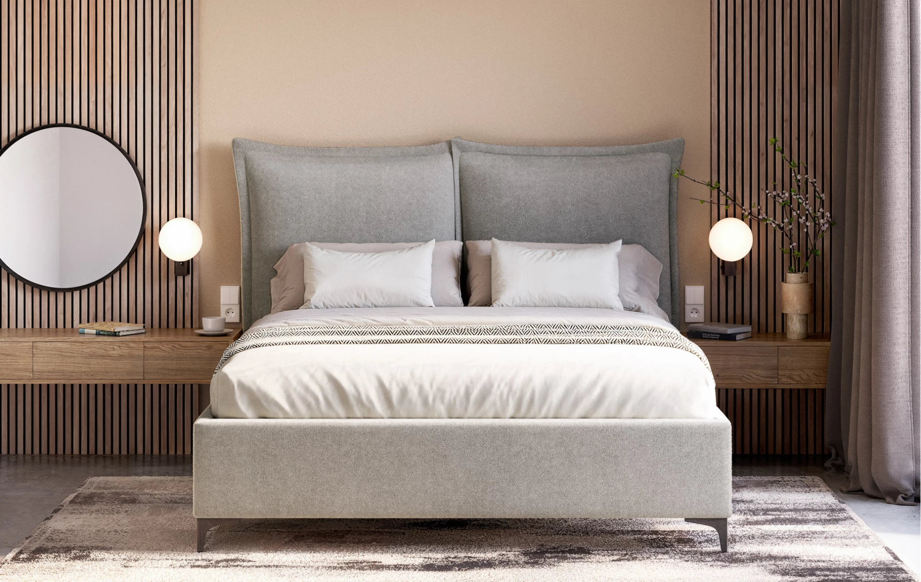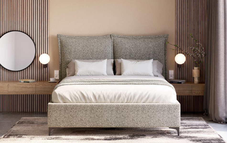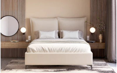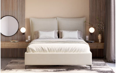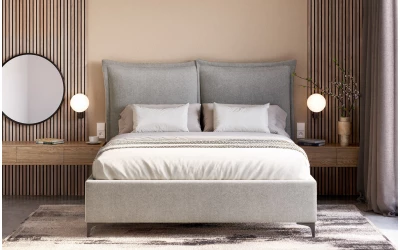 LunaBED MENSA to model, który od razu buduje w sypialni klimat komfortu. Jego wyróżnikiem są dwie miękkie, tapicerowane poduchy tworzące wezgłowie – wyglądają lekko, a jednocześnie dają bardzo wygodne oparcie podczas czytania czy wieczornego relaksu. To łóżko świetnie odnajduje się zarówno w jasnych, spokojnych wnętrzach, jak i w bardziej nastrojowych aranżacjach.