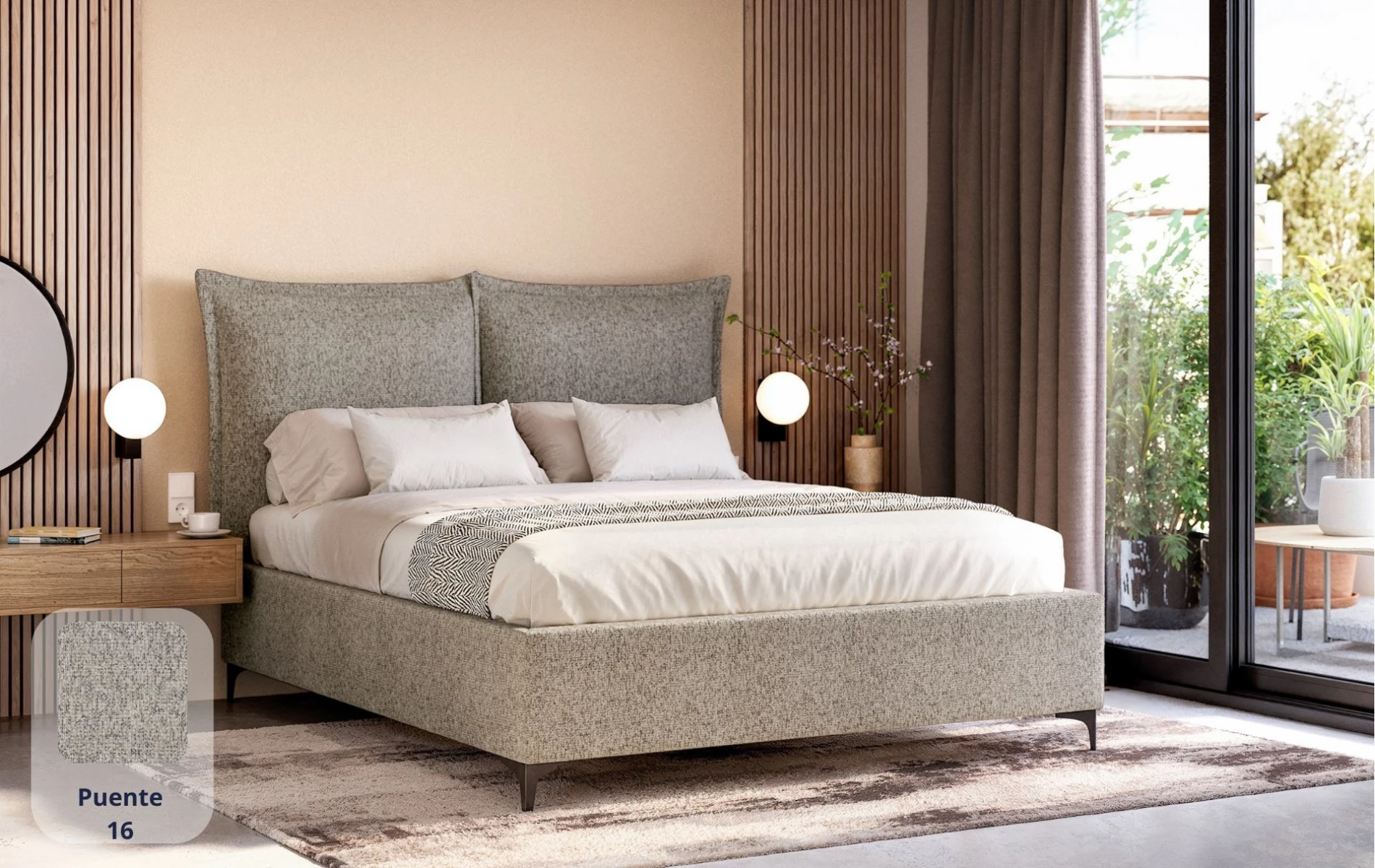 MENSA – przytulne łóżko tapicerowane z poduchami wezgłowia