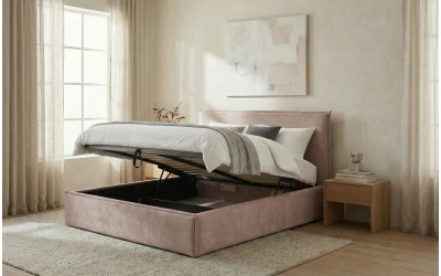 Praktyczne przechowywanie. SUBRA może być wyposażona w pojemnik na pościel, dzięki któremu kołdry, poduszki i sezonowe tekstylia mają swoje miejsce – bez dokładania komody czy skrzyni.