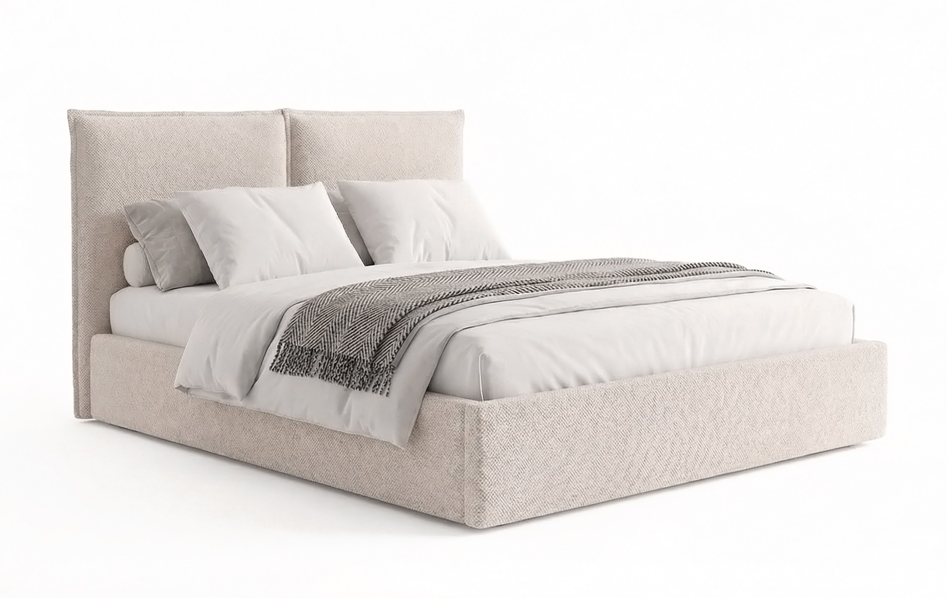 Najbardziej charakterystycznym elementem MERGI jest dwuczęściowe, „poduchowe” wezgłowie: dwie duże, miękkie panele tworzą elegancką, symetryczną całość i zapewniają bardzo wygodne oparcie podczas czytania czy wieczornego relaksu.