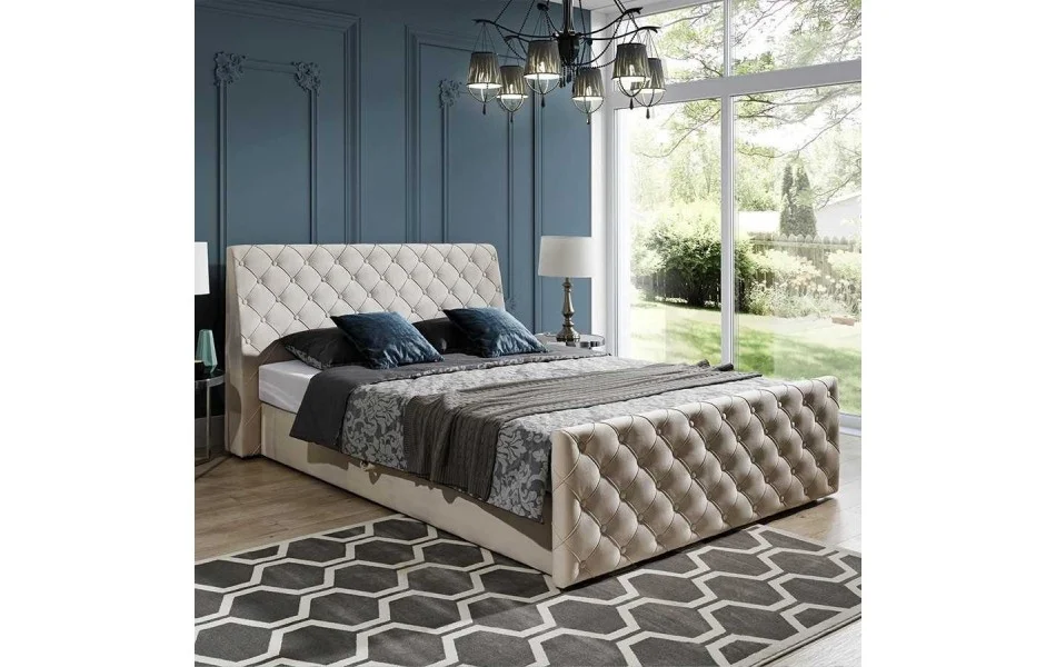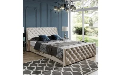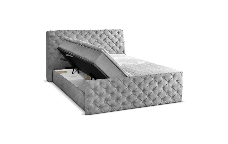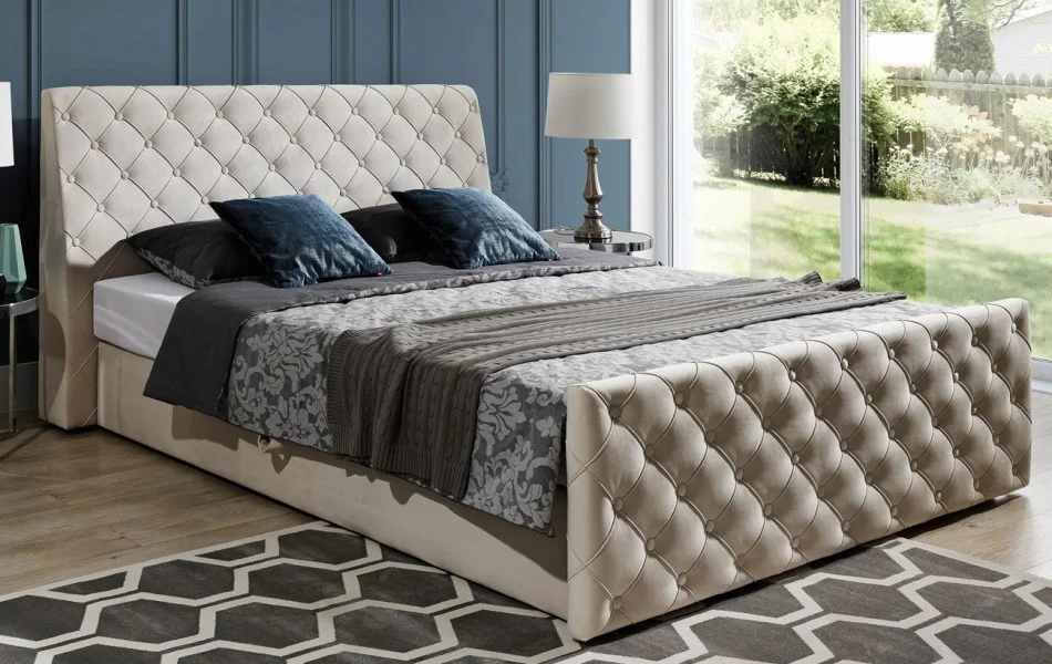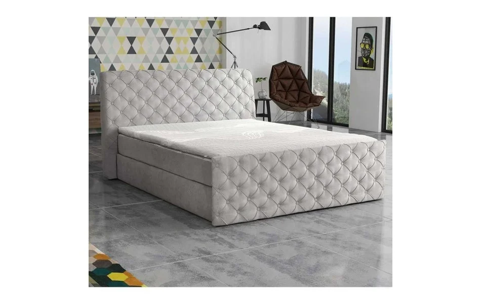 Łóżko tapicerowane Grey na prezentowanym zdjęciu wykonane jest w tkaninie z grupy I.