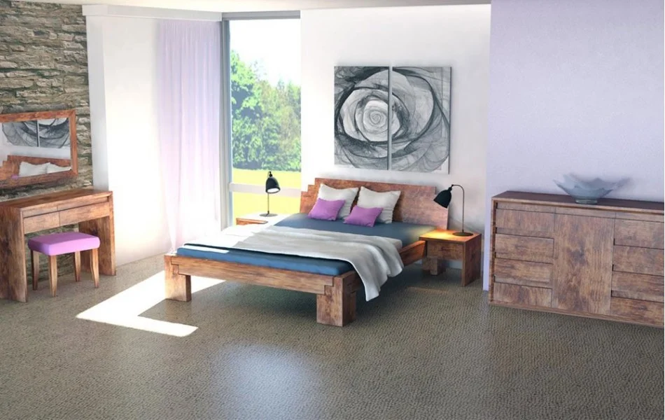 Łóżko z litego drewna olchowego lub dębowego dostępne także w innych wybarwieniach oraz z pojemnikiem na pościel.