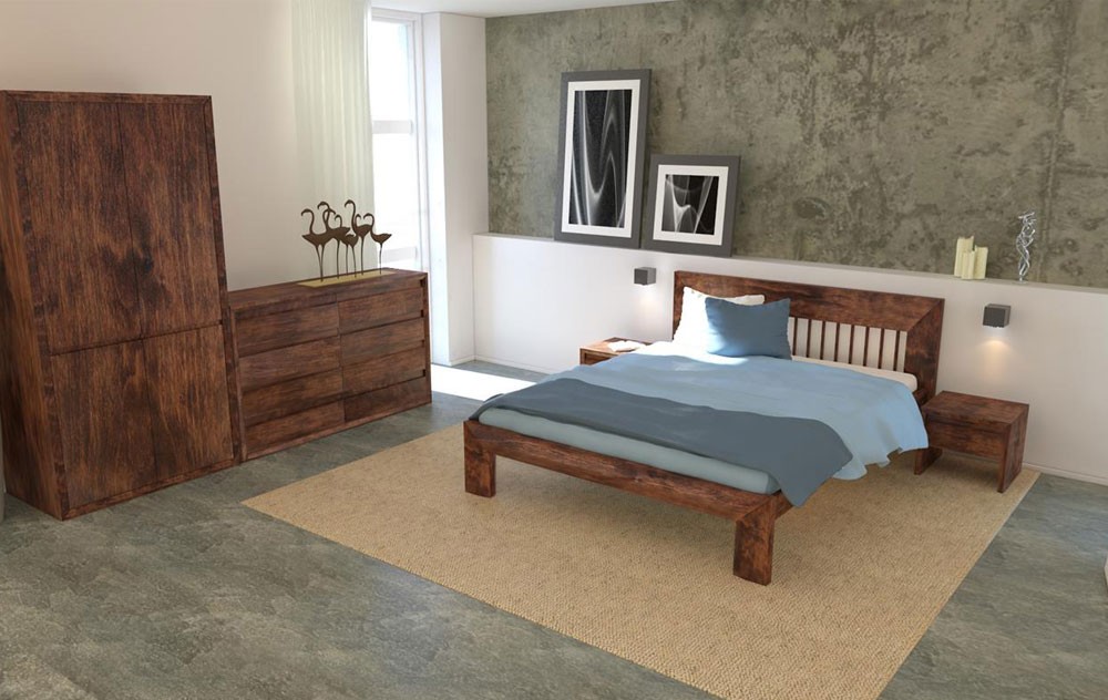 Łóżko z litego drewna olchowego lub dębowego dostępne także w innych wybarwieniach oraz z pojemnikiem na pościel.