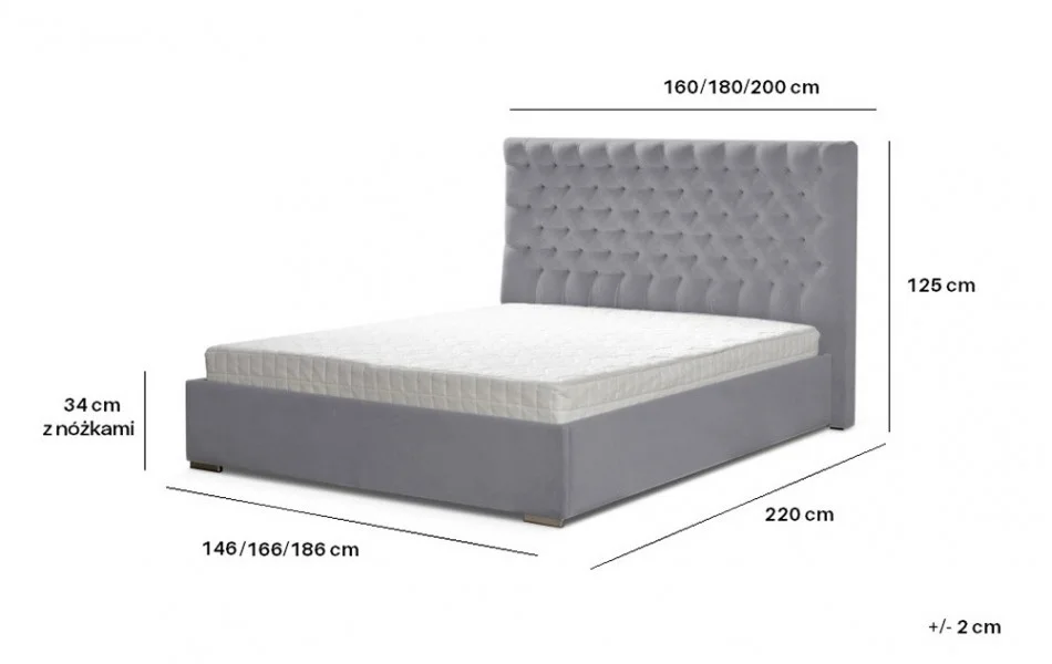 | Szerokość wezgłowia | 160 cm | 180 cm | 200 cm | 220 cm |