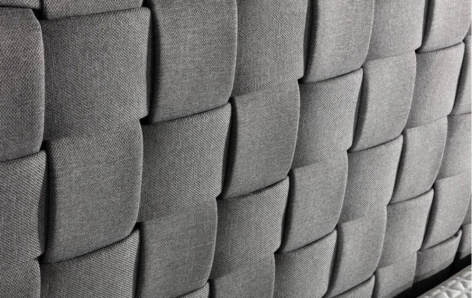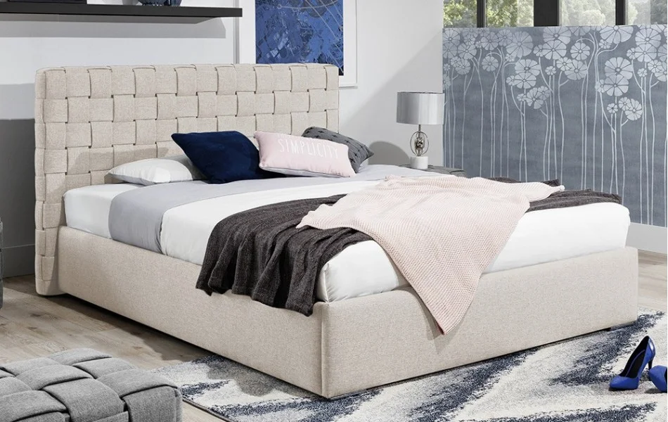 Łóżko tapicerowane Plecionka 130 to efektowne łóżko, pasujące do każdej sypialni. Ciekawe, przeplatane wezgłowie przyciąga uwagę i zapewnia wygodę w czasie lektury czy oglądania filmu.