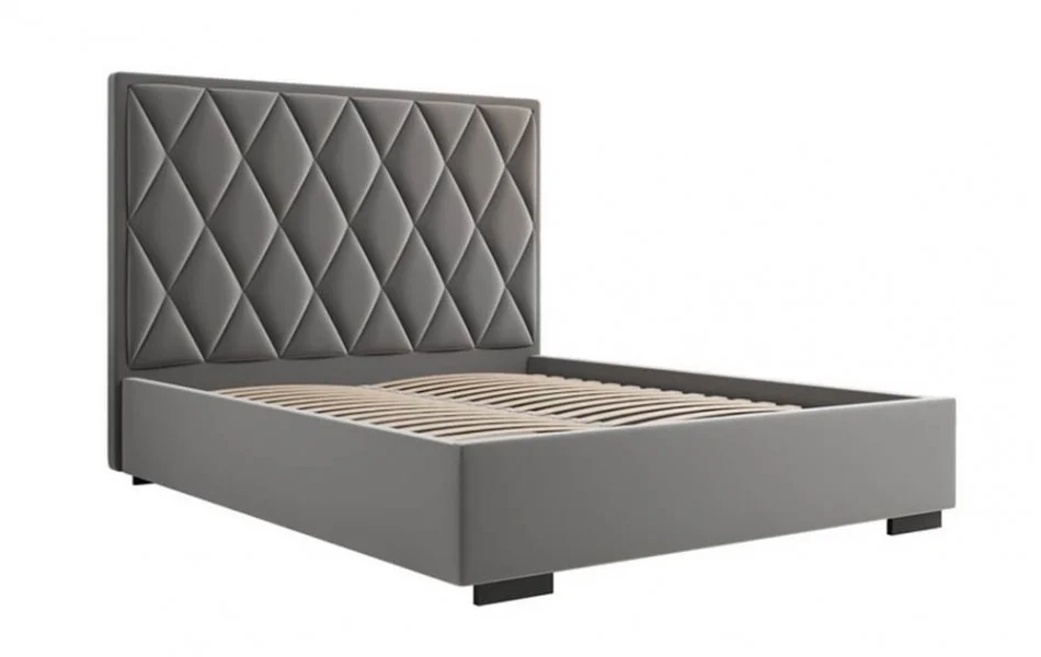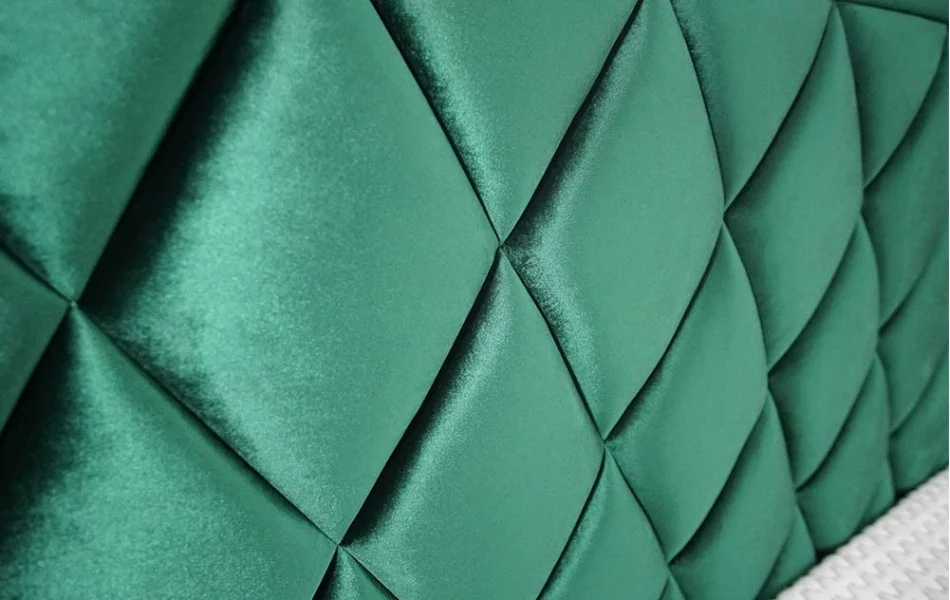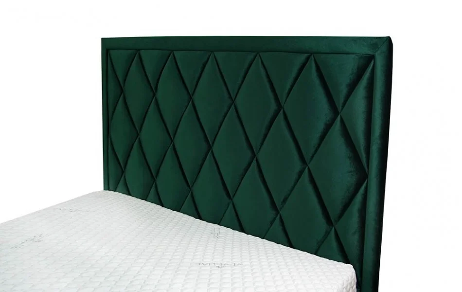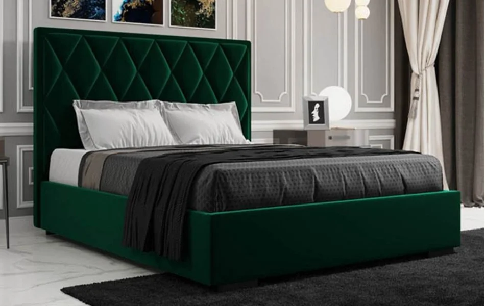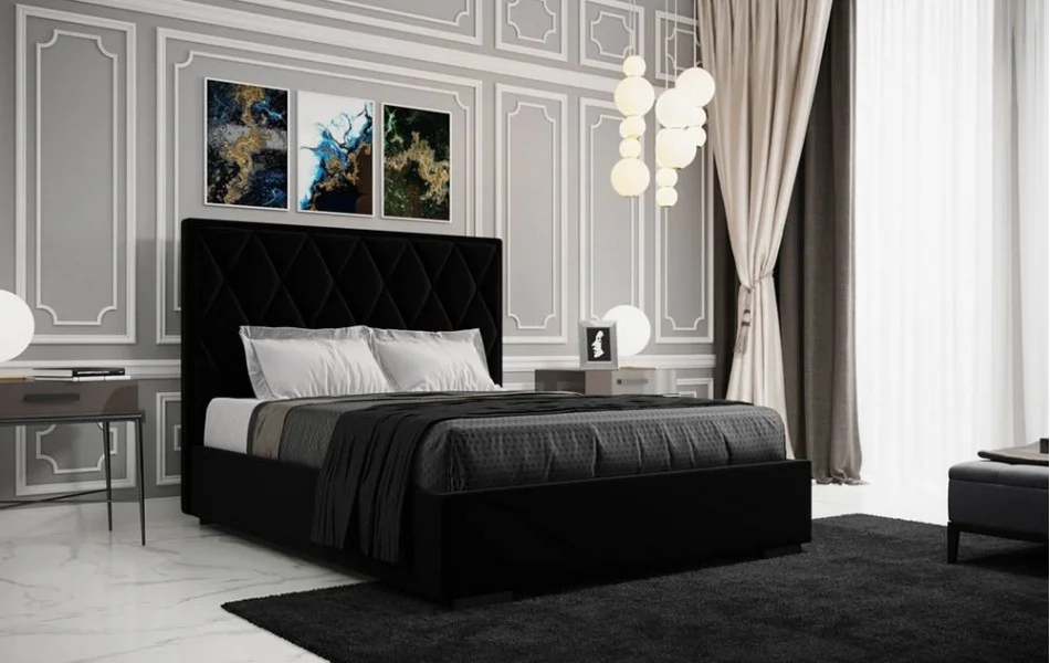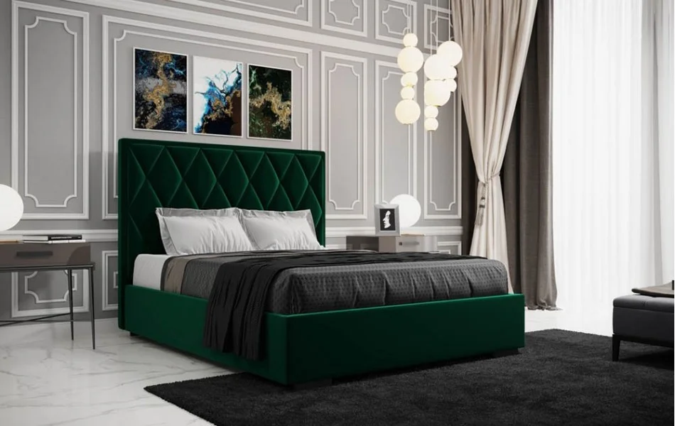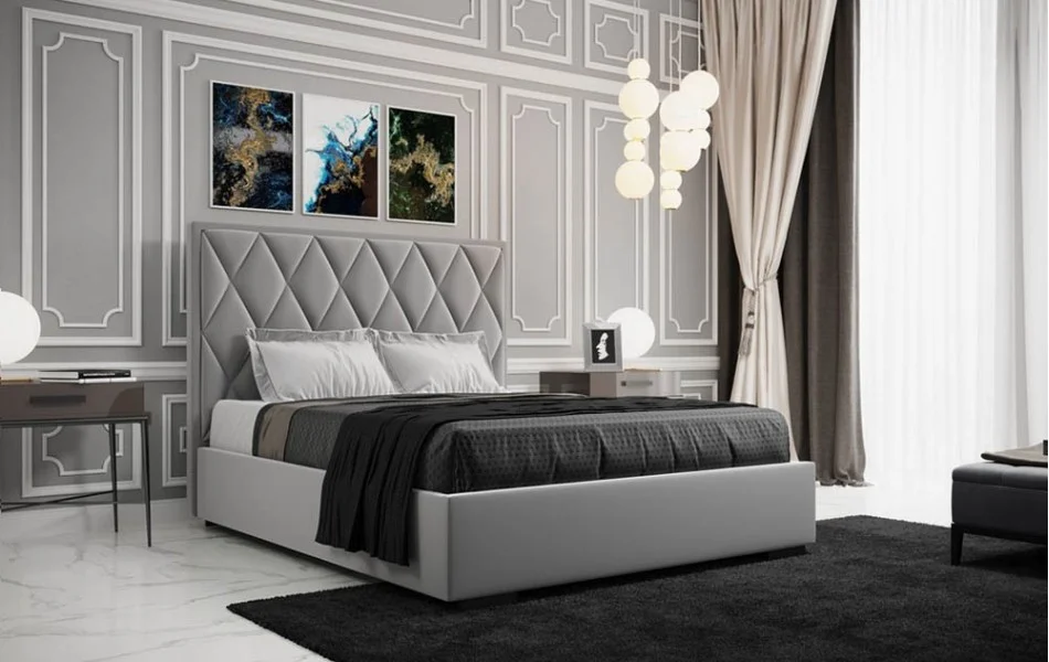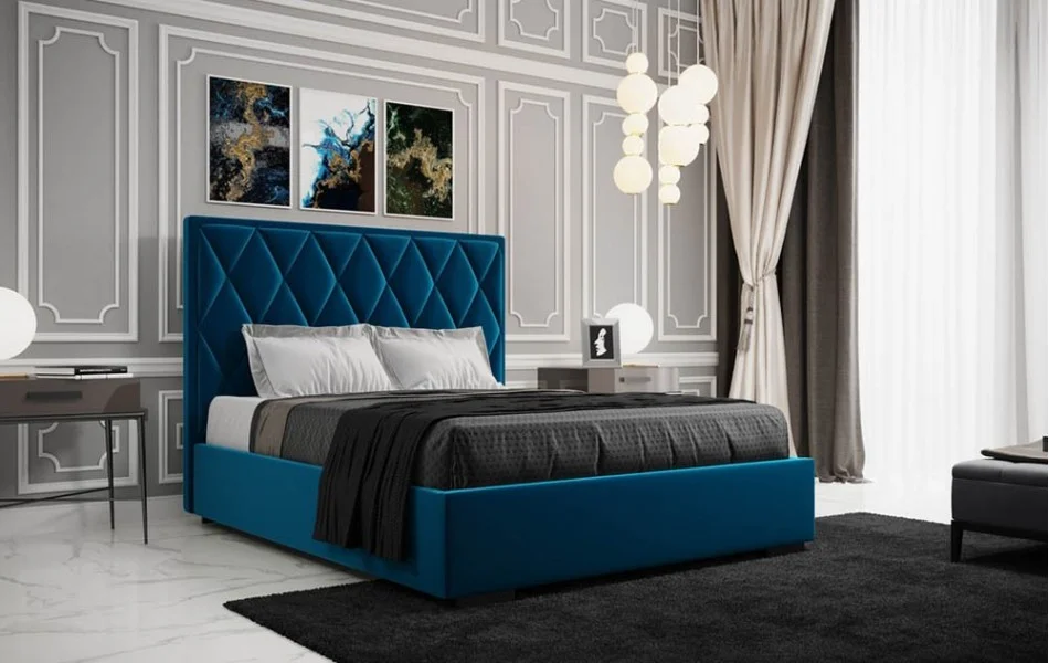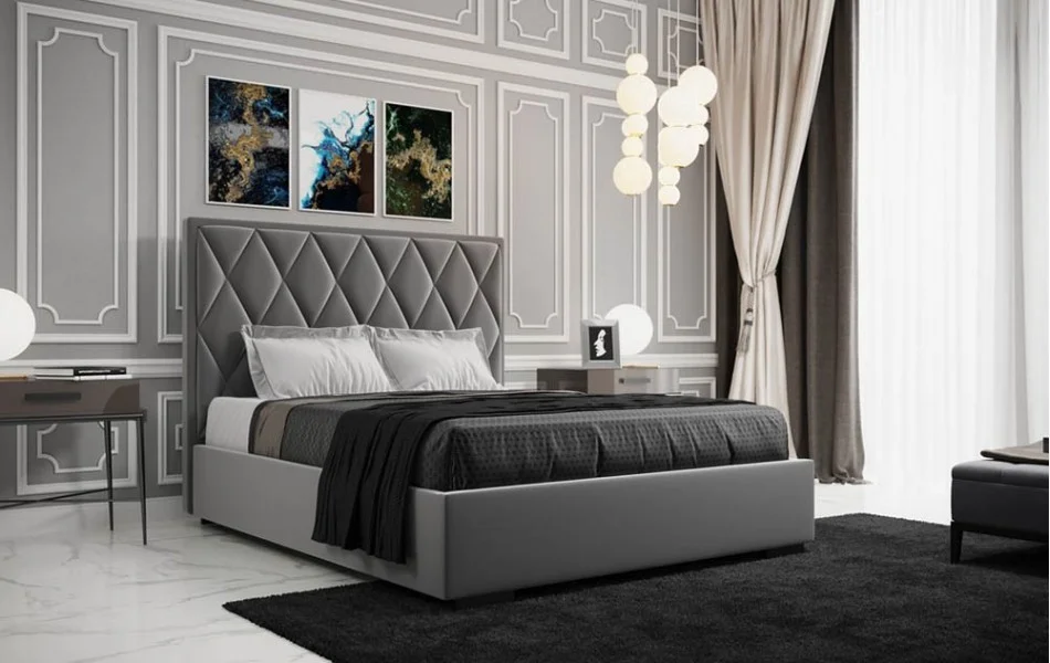 Łóżko tapicerowane PIK to model, w którym uwagę przykuwa wysoki zagłówek w wyraźne romby.