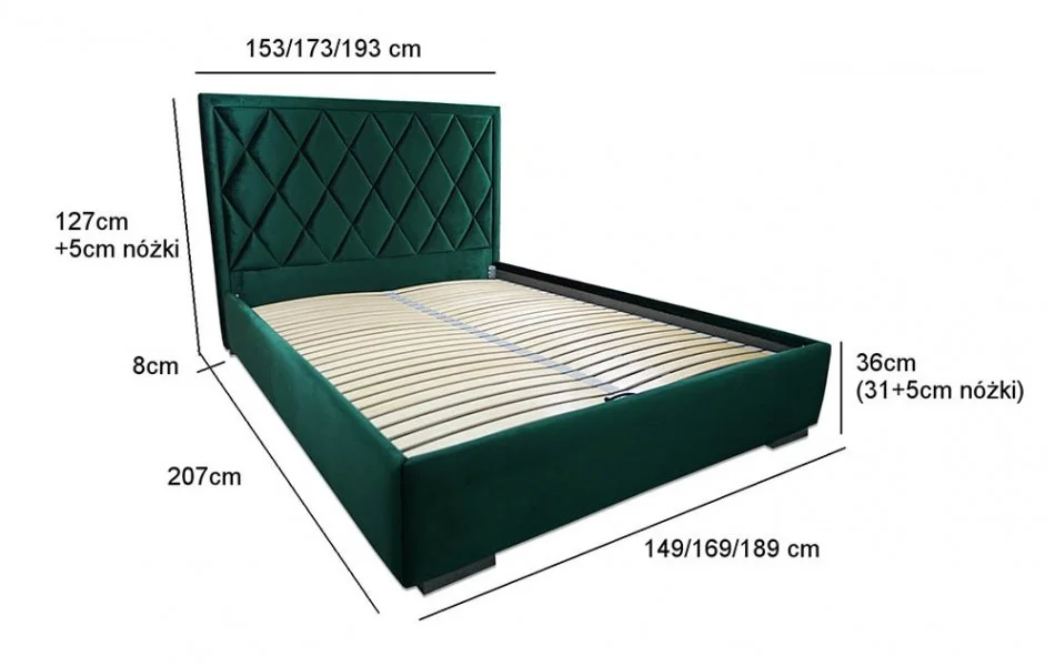 Podane wysokości obejmują nóżki łóżka.