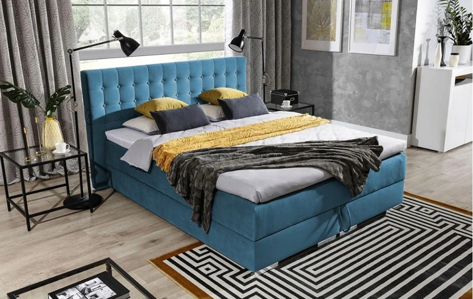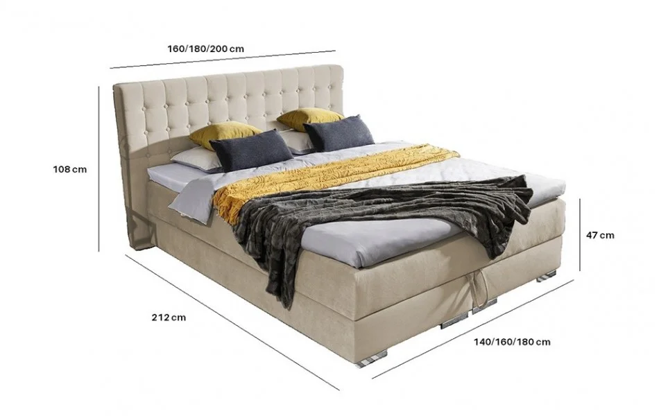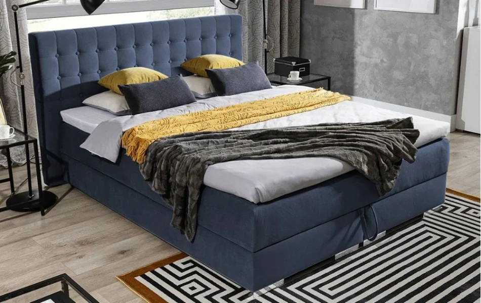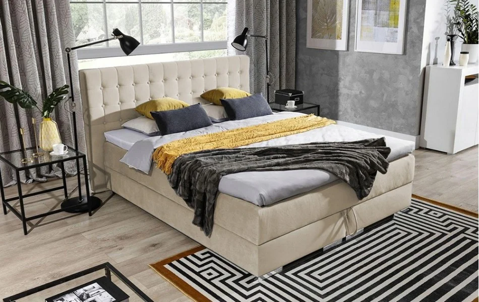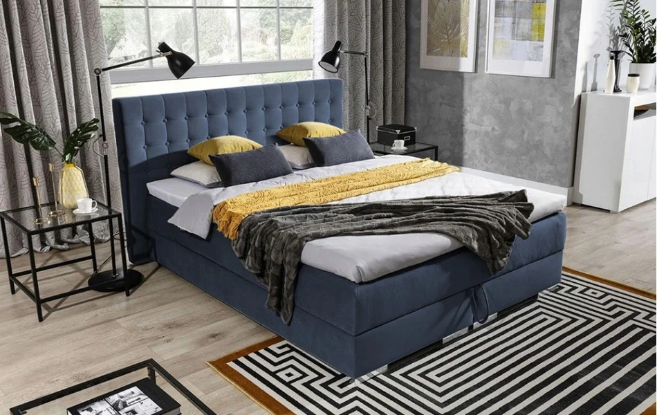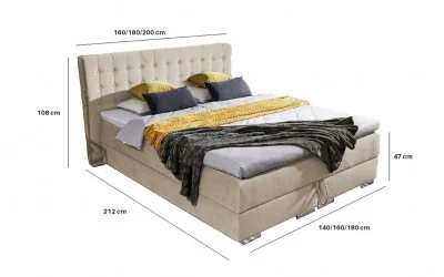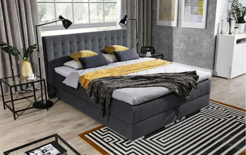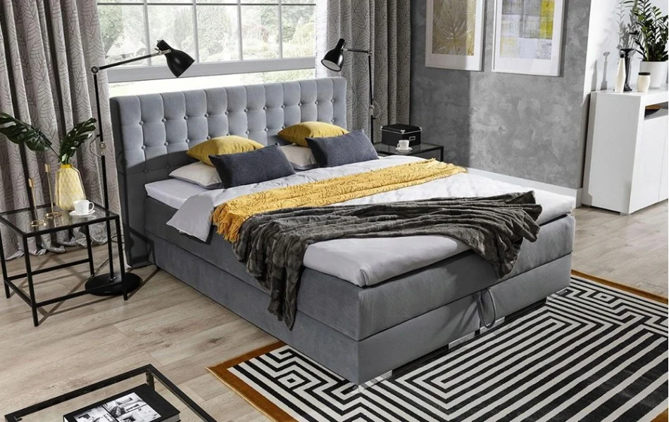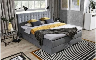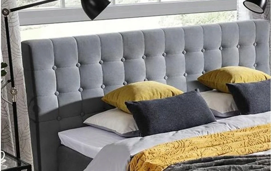 Pikowane wezgłowie z tapicerowanymi guzikami tworzy miękkie oparcie, idealne jeśli w łóżku lubisz czytać książki lub oglądać telewizję. Łóżko kontynentalne ma ten sam wymiar co pasujący do niego materac. Antypoślizgowy materiał zapobiega przesuwaniu się materaca.