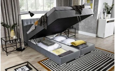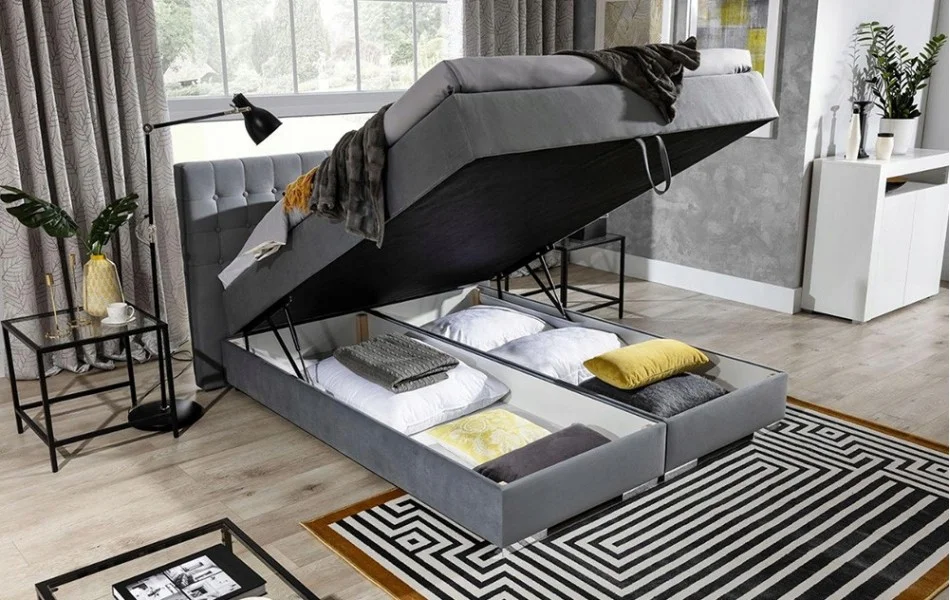 Pojemnik na pościel unoszony siłownikami gazowymi jest łatwy w obsłudze i pozwala zadbać o porządek w sypialni.
