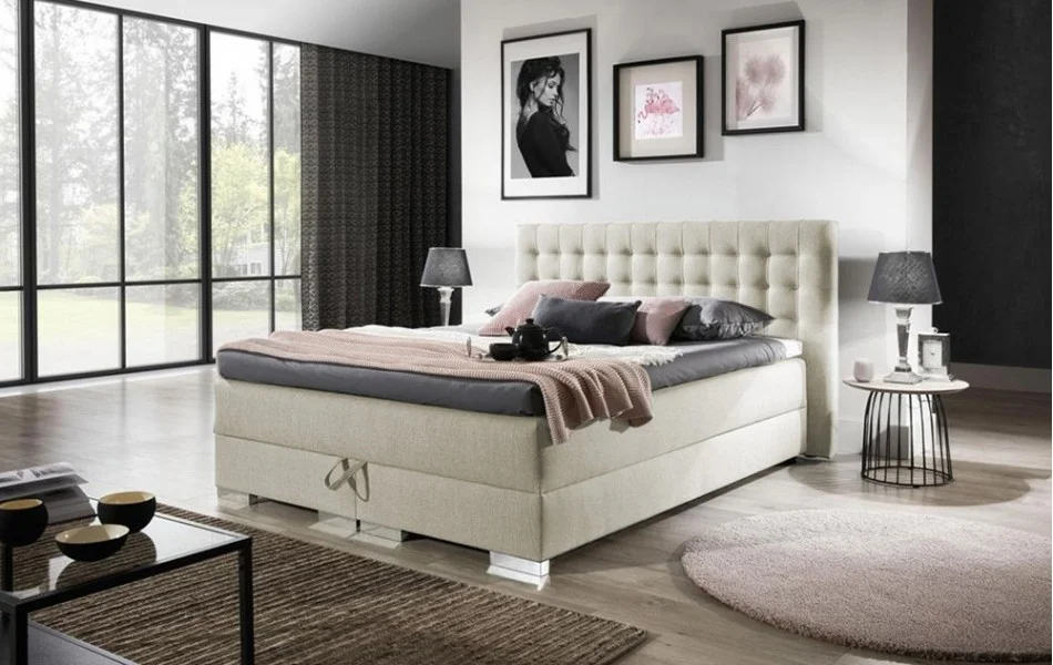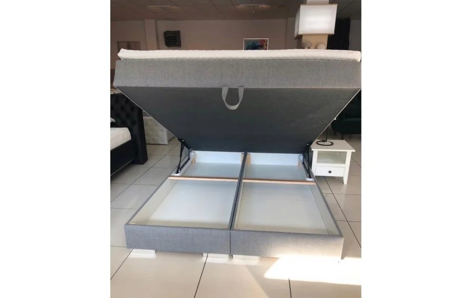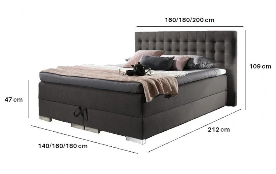 Łóżko kontynentalne Filip 2 dostępne jest w standardowych rozmiarach 140x200, 160x200, 180x200 oraz 200x200. Możesz też zamówić łóżko na wymiar. Model wyposażony jest w pojemnik na pościel zamocowany na siłownikach gazowych. Dzięki temu bez problemu uniesiesz stelaż z materacem.