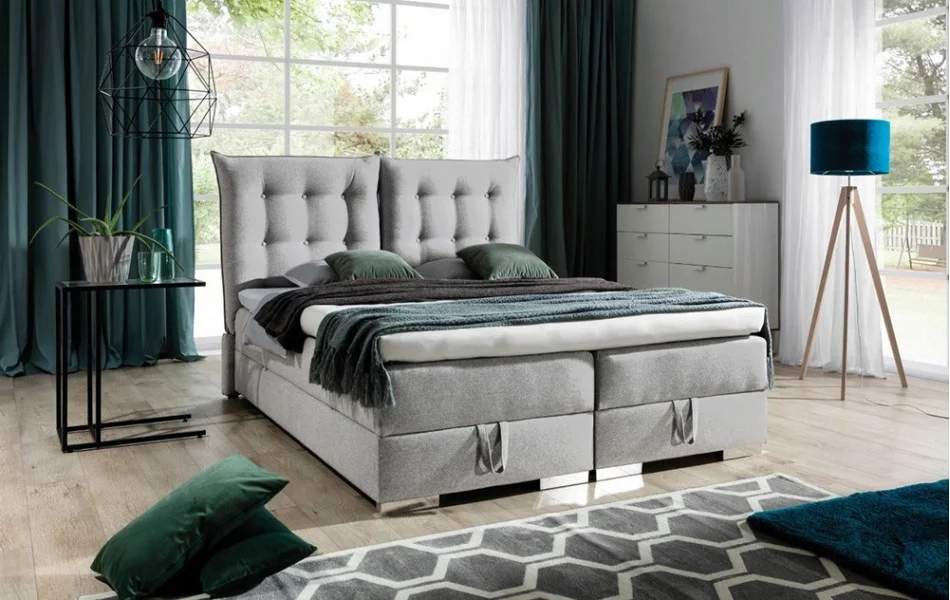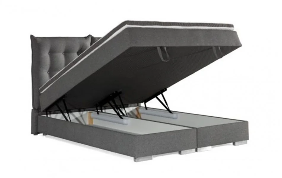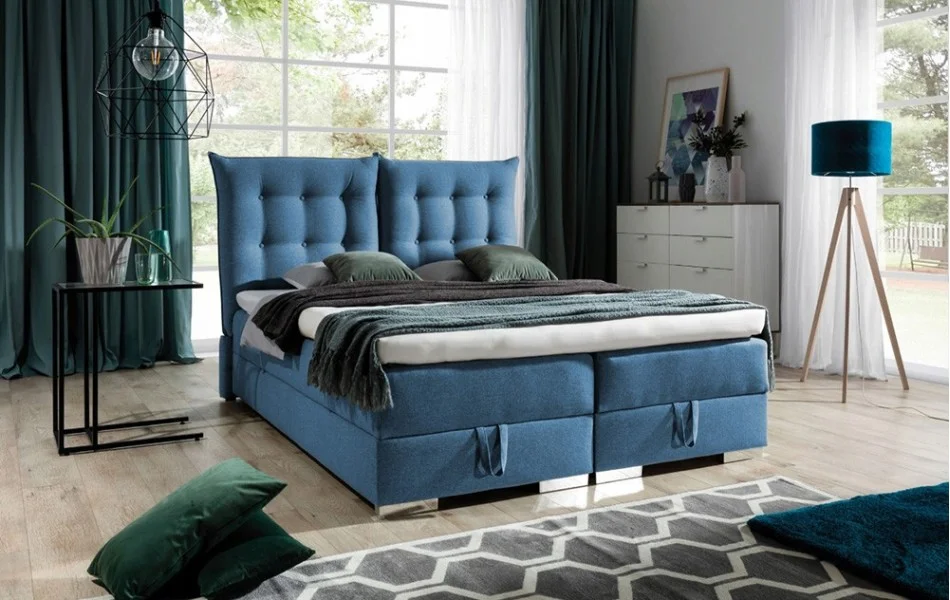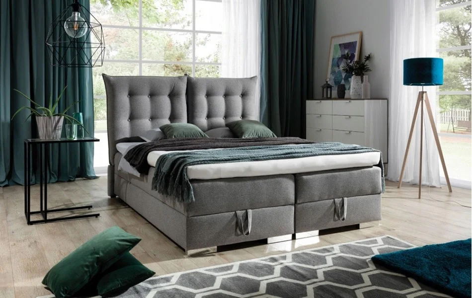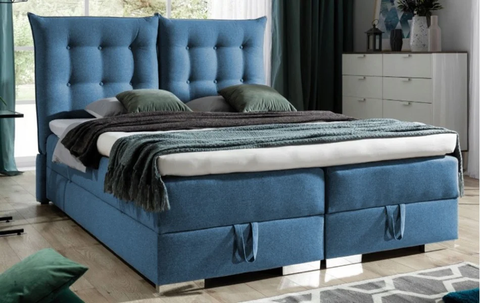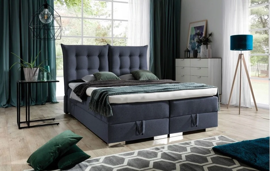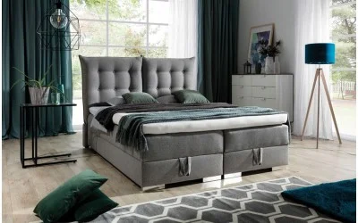 Łóżko tapicerowane w stylu kontynentalnym to model, którego szerokość odpowiada szerokości materaca. Antypoślizgowy materiał zapobiega przesuwaniu się materaca po łóżku, a duży pojemnik na pościel, zamocowany na siłownikach gazowych, pozwoli Ci zadbać o porządek w sypialni.